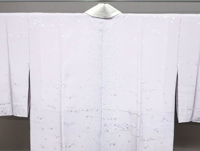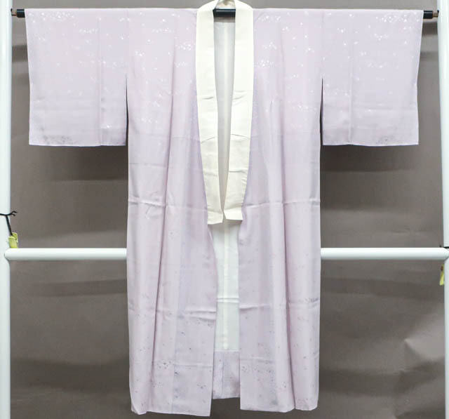 リサイクル商品のため、裏地に汚れがございますが着用可能なお品です。 袷仕立てでございます。 地色は、薄紫色です。 1枚目の画像が近いお色かと思われます。 素材は正絹です。 |