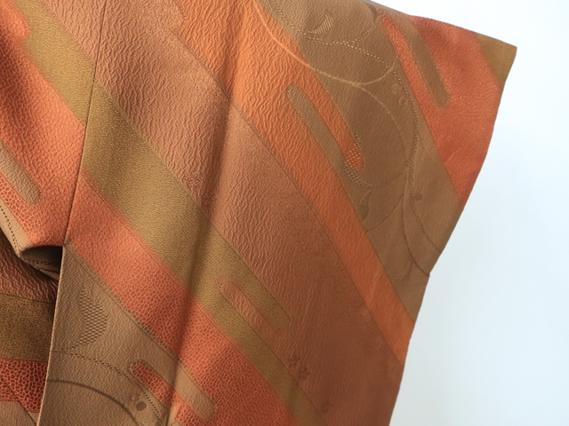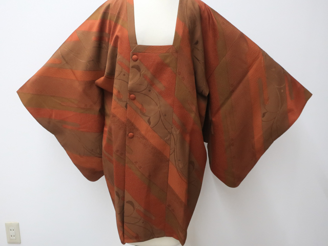 リサイクル商品ではございますが、大変良い状態のお品です。 地色は、赤茶色です。 1枚目の画像が近いお色かと思われます。 素材は正絹です。 |