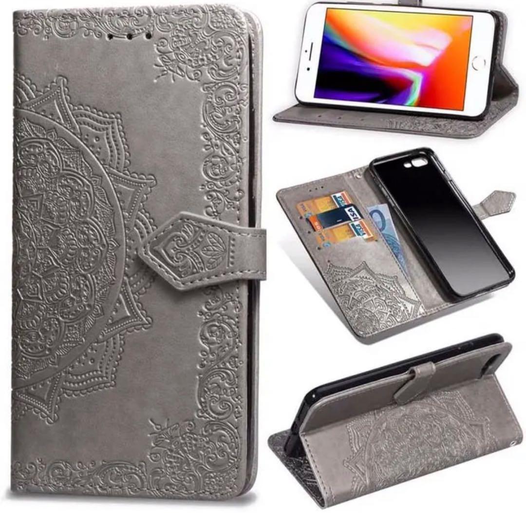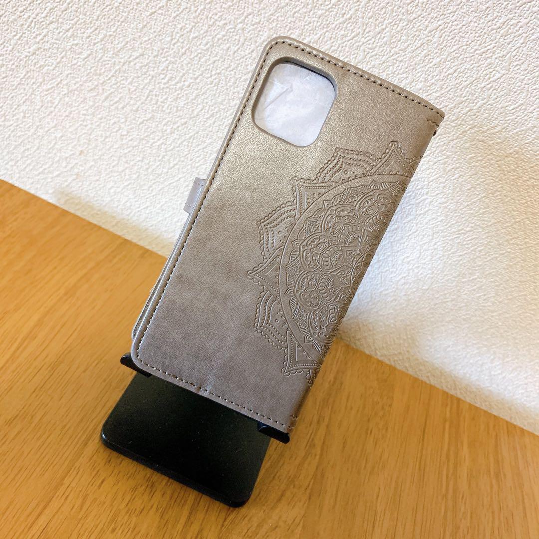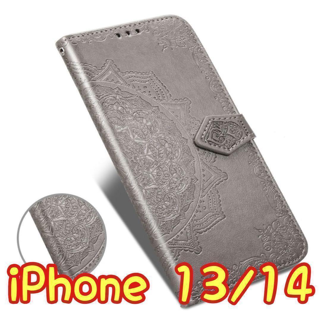 エンボス加工スマホケース 手帳型 iPhone13/14 グレー