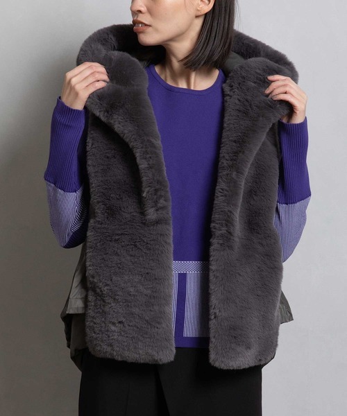 素材:表地:(ファー) ポリエステル100%, 別地:(タフタ) ポリエステル100%, 中綿: ポリエステル100%, 裏地: ポリエステル100%