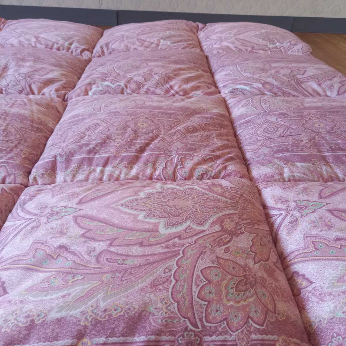 中わたは東洋紡 岩国工場で生産した極細ポリエステル繊維 シュレープを100%を使用しておりますので、羽毛のような保温性を実現し ほこりなどが少なく、体を包み込むようなドレープ性に優れております。