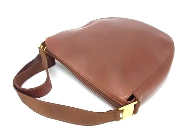 1円 Salvatore Ferragamo フェラガモ レザー クロスボディ ショルダーバッグ 斜め掛け 肩掛けかばん メンズ レディース ブラウン系 FV3170