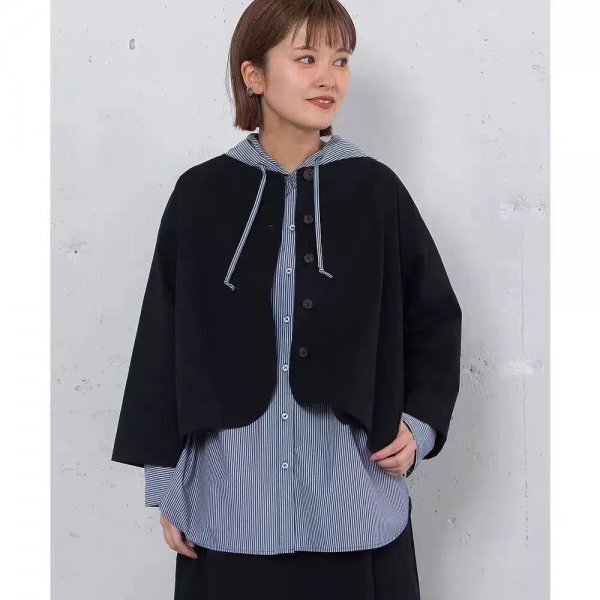 m 2510 ジャケット 羽織物 チュニック トップス 上着 綿100% 大人可愛 オシャレ フリーサイズ ブラック