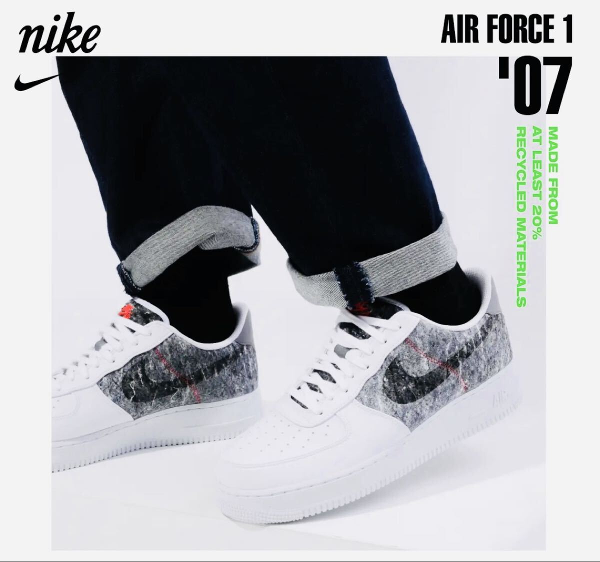 NIKEナイキ AIRFORCE1 LOWS APPEAR WITH RECYCLED FIBRES