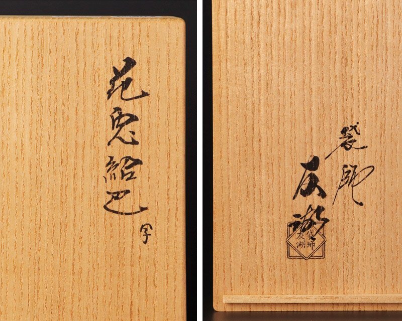 【土田友湖】 千家十職の一つ、袋師。二代以降、当主の通称は半四郎であり隠居して剃髪すると友湖を名乗る。五代までは仕服を生業としたが、以降は茶道具の茶入の仕覆(しふく)や、 服紗、角帯などを作る。2022年時点での、当代は十三代土田半四郎(2014年に襲名) |