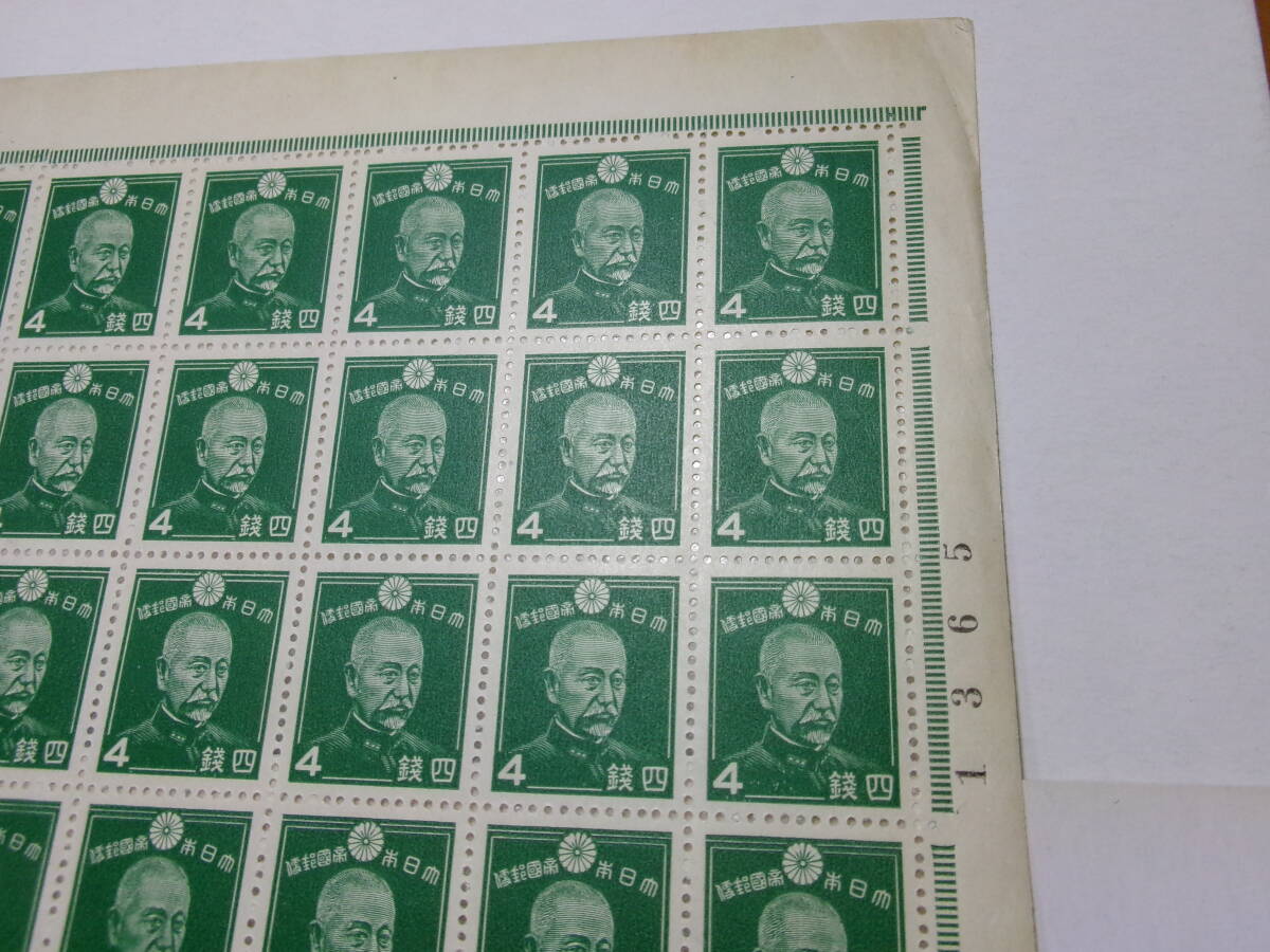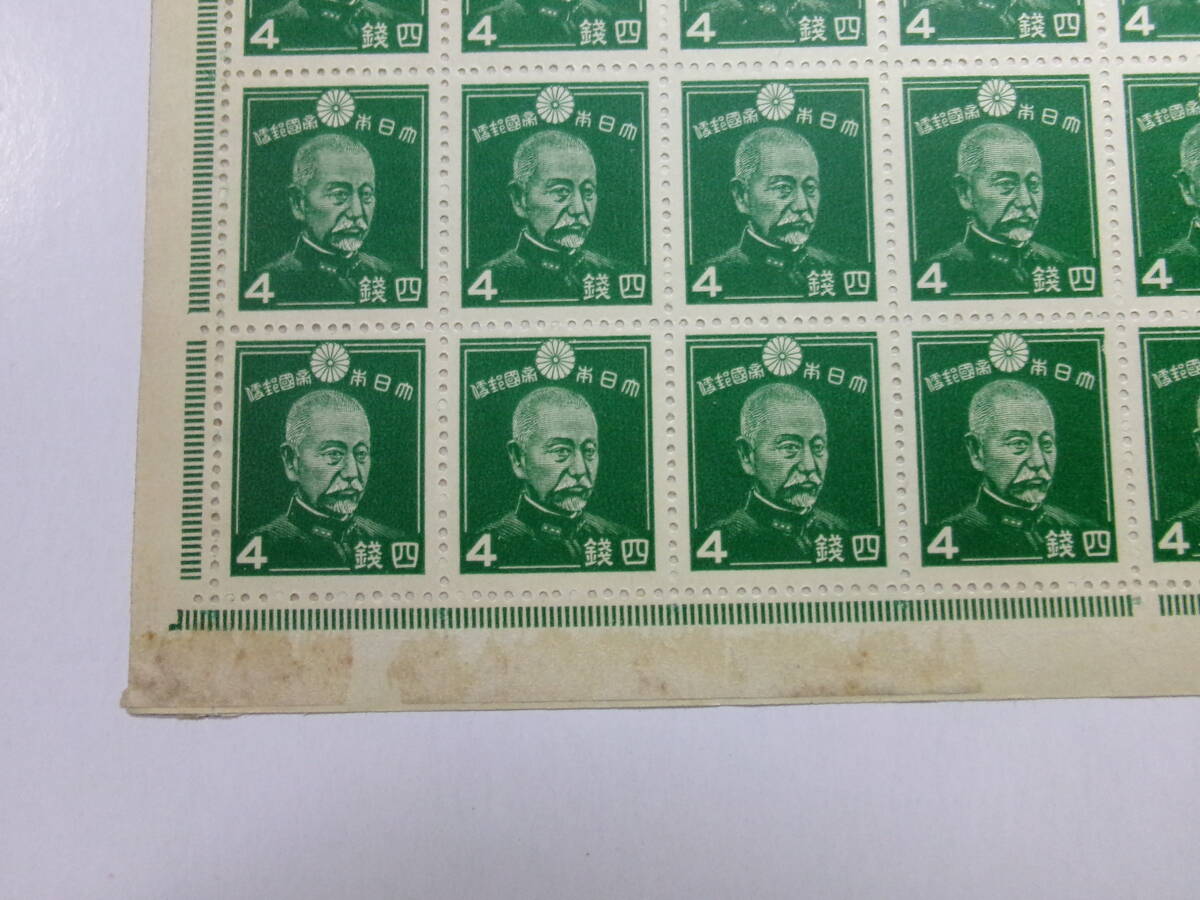1次昭和切手 東郷平八郎 4銭 輪転版 シート 傷や付着 未使用 K-17
