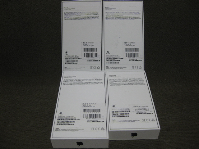 iPhone13の箱3個とiPhone13miniの箱1個です。