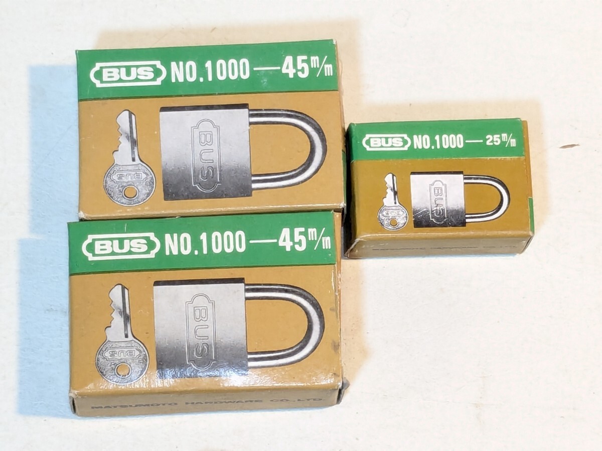送料無料 南京錠 BUS No.1500 45 mm2個 25mm 1個 鍵