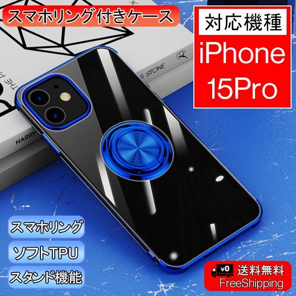 | 商品名 | iPhone 15Pro 用 スマホケース 新品 クリア ソフト 透明 スマホリング 車載 アイフォン 携帯ケース カバー ブルー |