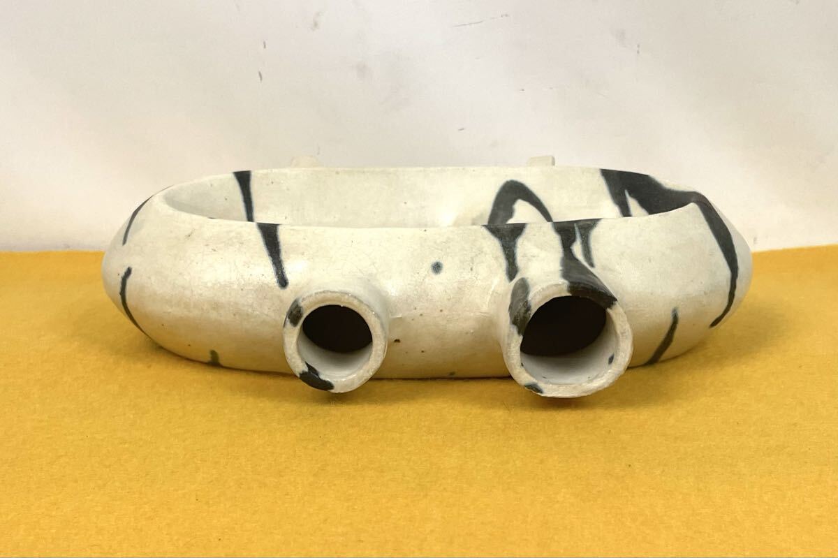 和モダンスタイルを彷彿とさせる個性的なデザインのフラワーベースです。オブジェとしても魅力的なお品です。