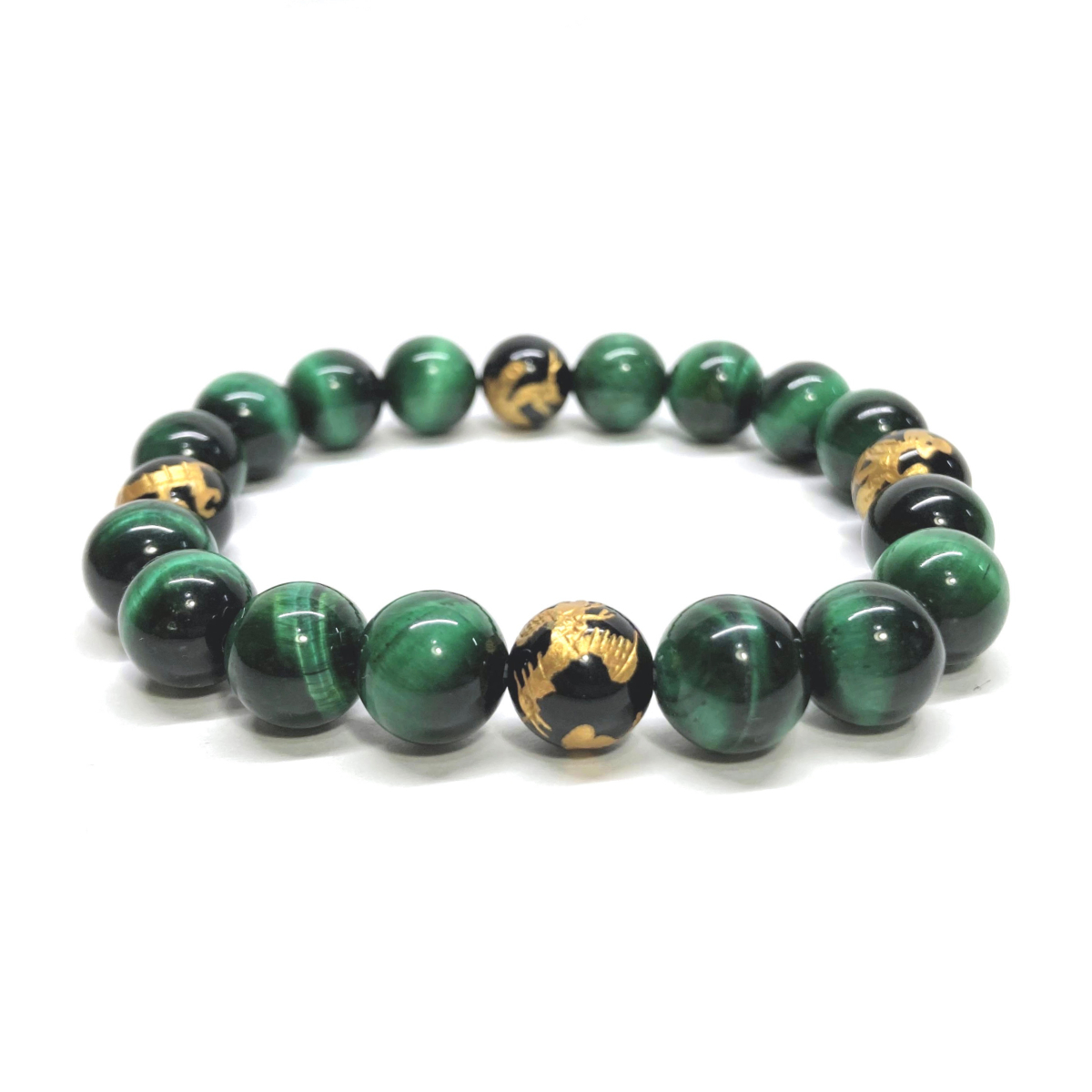 10mm 四神獣金彫オニキス×グリーンタイガーアイ パワーストーン ブレスレット天然石 運気上昇 開運 金運 青龍 白虎 玄武 朱雀 ☆