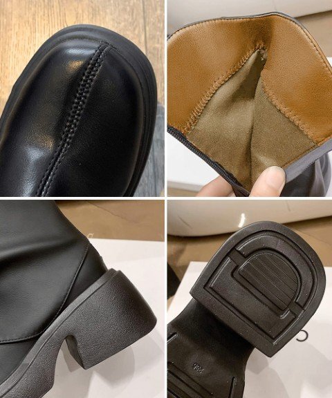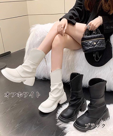 きれいめブーツ合皮 ストリートくつ人気 チャンキーヒール靴