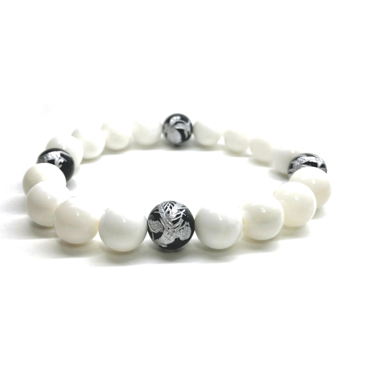 10mm 四神獣銀彫オニキス×ホワイトオニキス パワーストーン ブレスレット天然石 運気上昇 開運 金運 恋愛運 青龍 白虎 玄武 朱雀 ☆