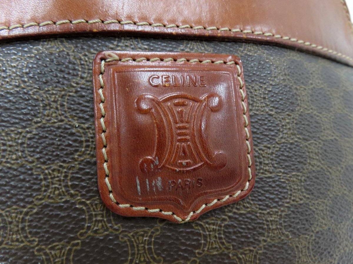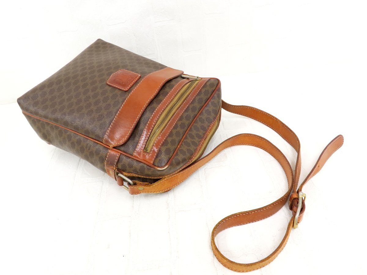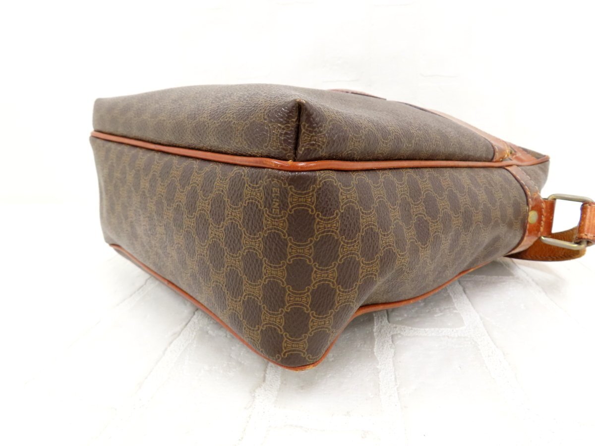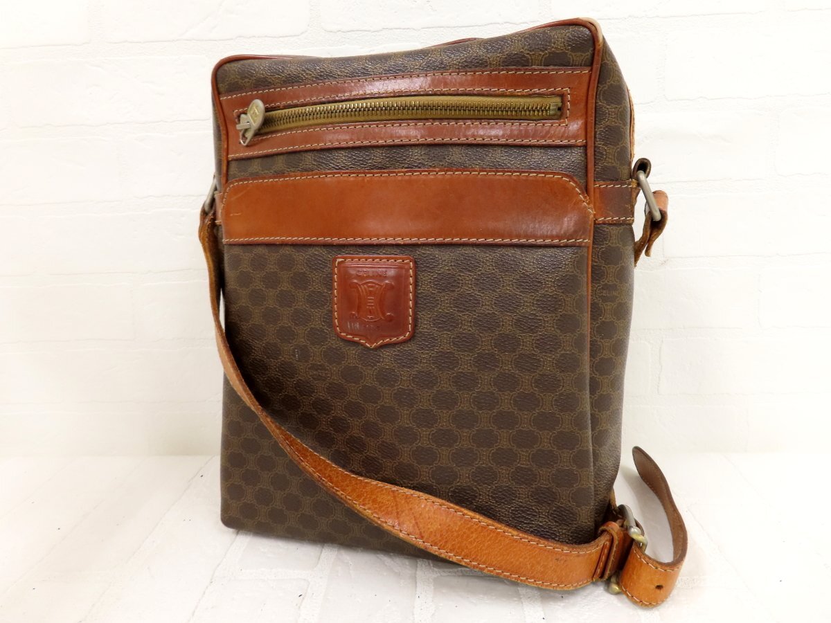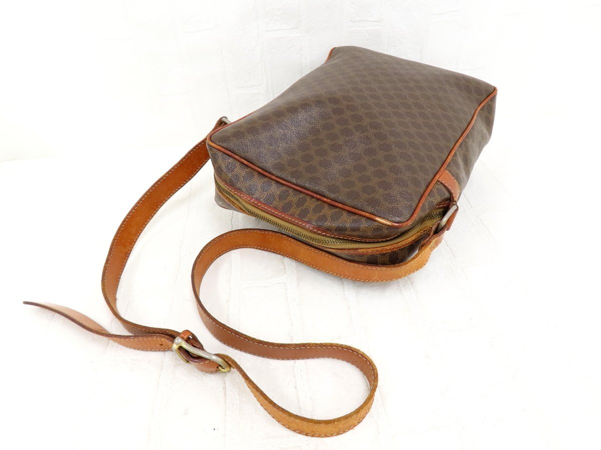 ◆CELINE セリーヌ◆マカダム◆PVC カーフ レザー 本革◆ショルダー バッグ◆ブラウン ゴールド金具◆ロゴ型押し◆斜め掛け◆A13693