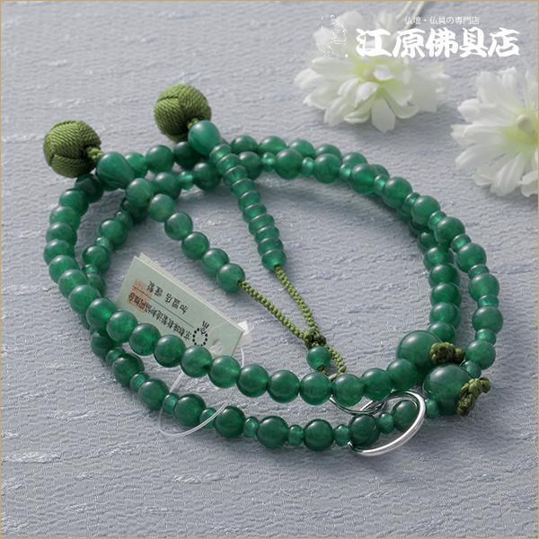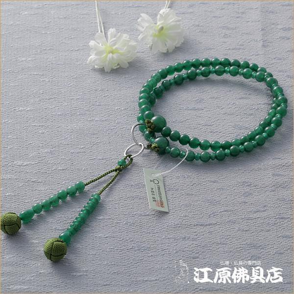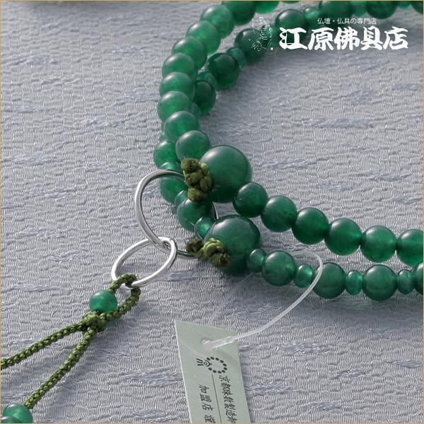 【京念珠/女性】浄土宗:アベンチュリン(印度翡翠)八寸共仕立 正絹梵天房(銀輪入り)≪桐箱入り≫【余宗用/本式/念珠/数珠/女性】
