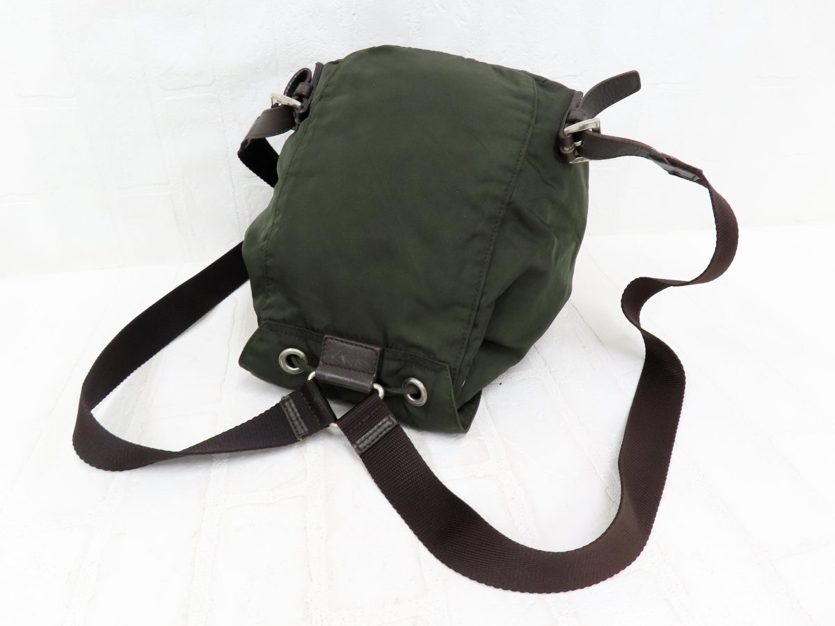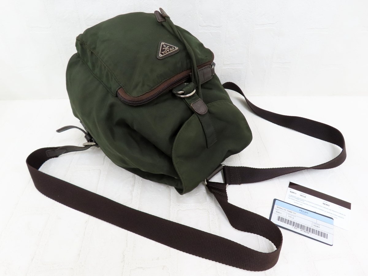 ◆美品◆PRADA プラダ◆ナイロン サフィアーノ レザー 本革◆リュック サック バックパック◆カーキ シルバー金具◆イタリア製◆A13657