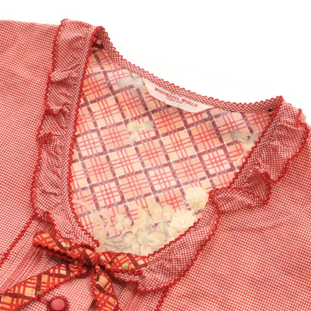 ワンダフルワールド カネコイサオ ワンピース 半袖 トップス ボトムス チェック 花柄 総柄 レディース レッド系 付属品:写真のものが全てです ●表記サイズ:記載がありませんでした ○実寸 着丈:129cm 肩幅:47cm 身幅:50cm 袖丈:16.5cm 裄丈:40cm ウェスト幅:29.5cm ⇒ アパレル商品のカラー基準・採寸方法・海外サイズ換算表 (参考)トルソー(マネキン)は男女ともMサイズです。 素材:綿100% | ||||||||||||||||