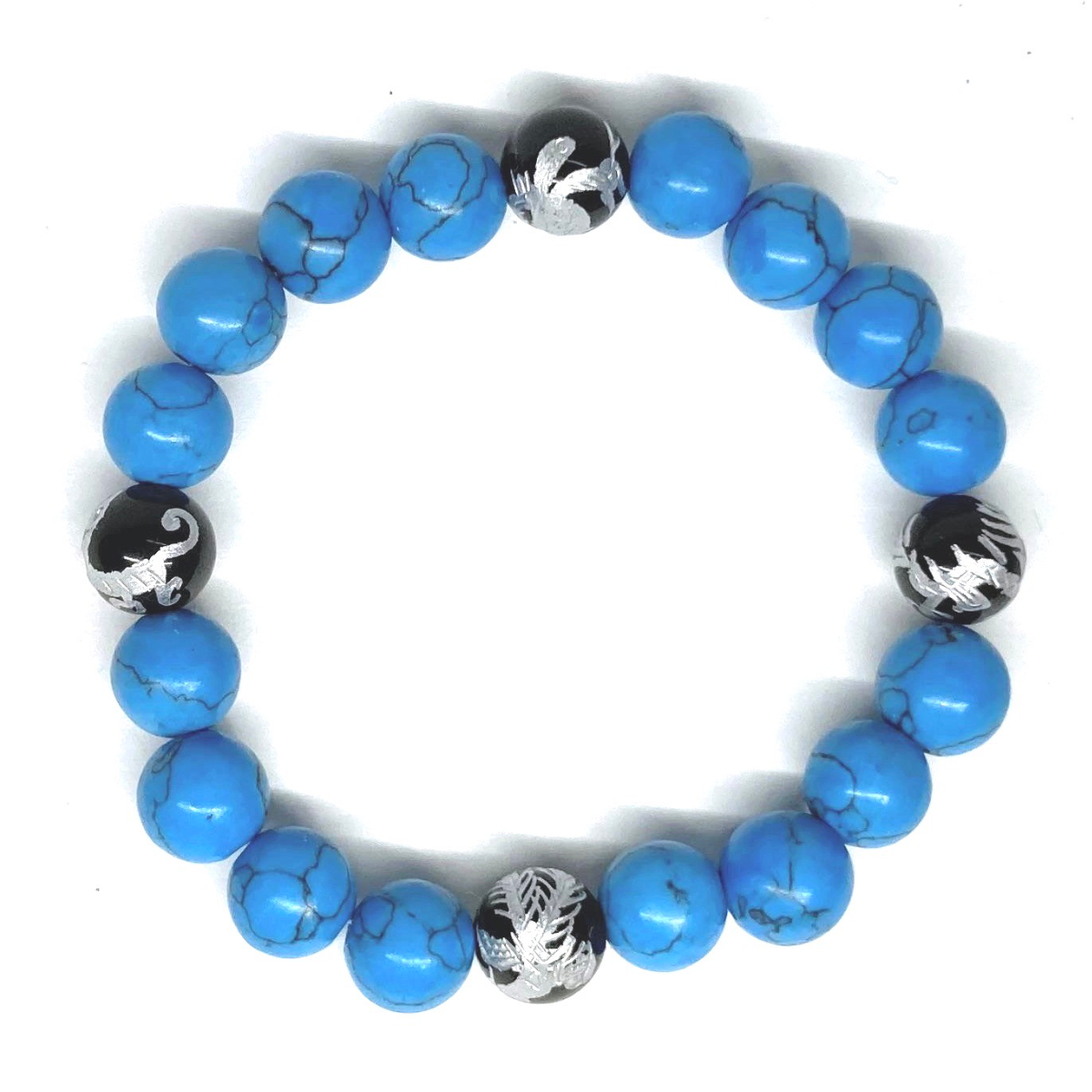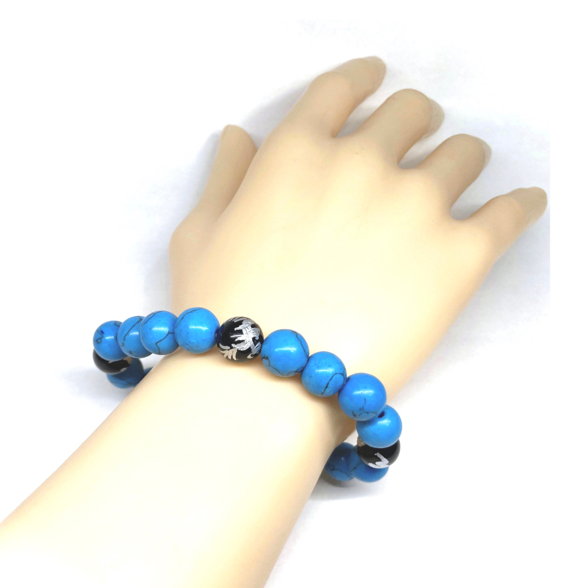 10mm 四神獣銀彫オニキス×ターコイズ パワーストーン ブレスレット天然石 運気上昇 開運 金運 恋愛運 青龍 白虎 玄武 朱雀 #1 ☆