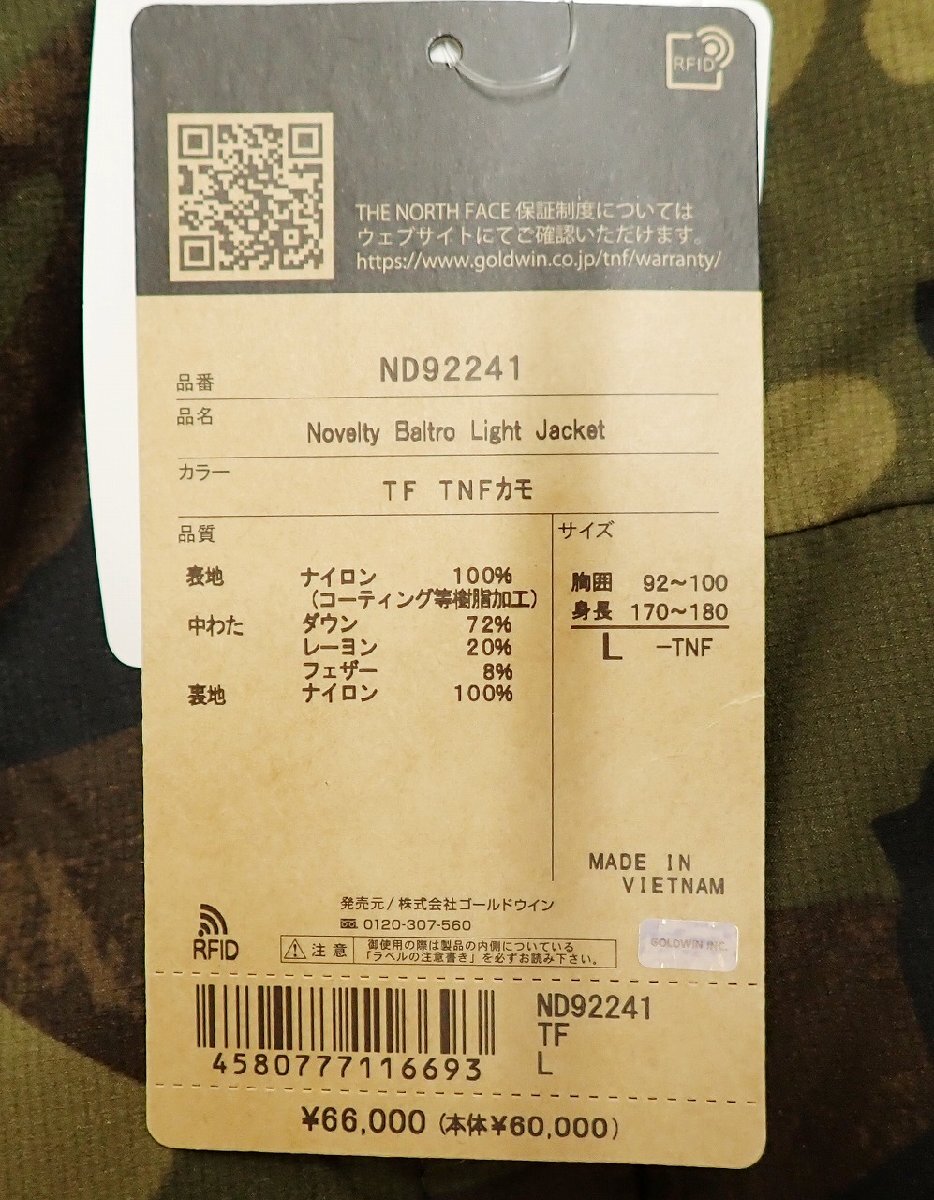 アイテム名 | ノースフェイス ノベルティバルトロライトジャケット ND92241 |