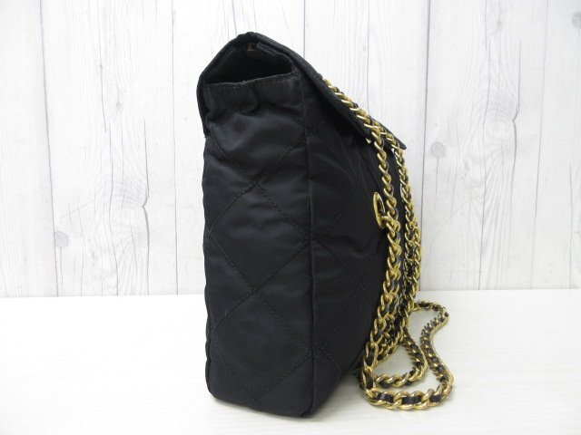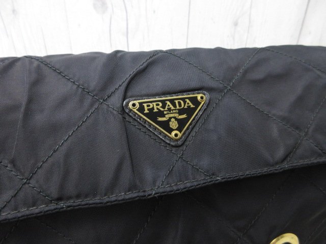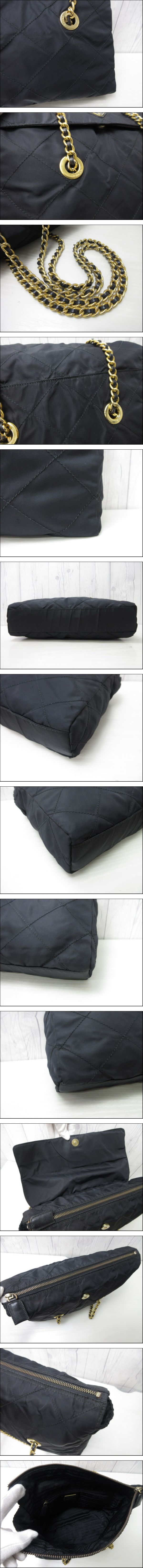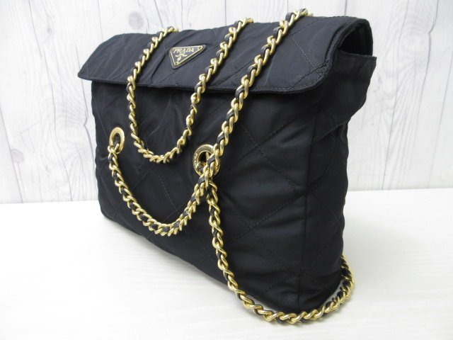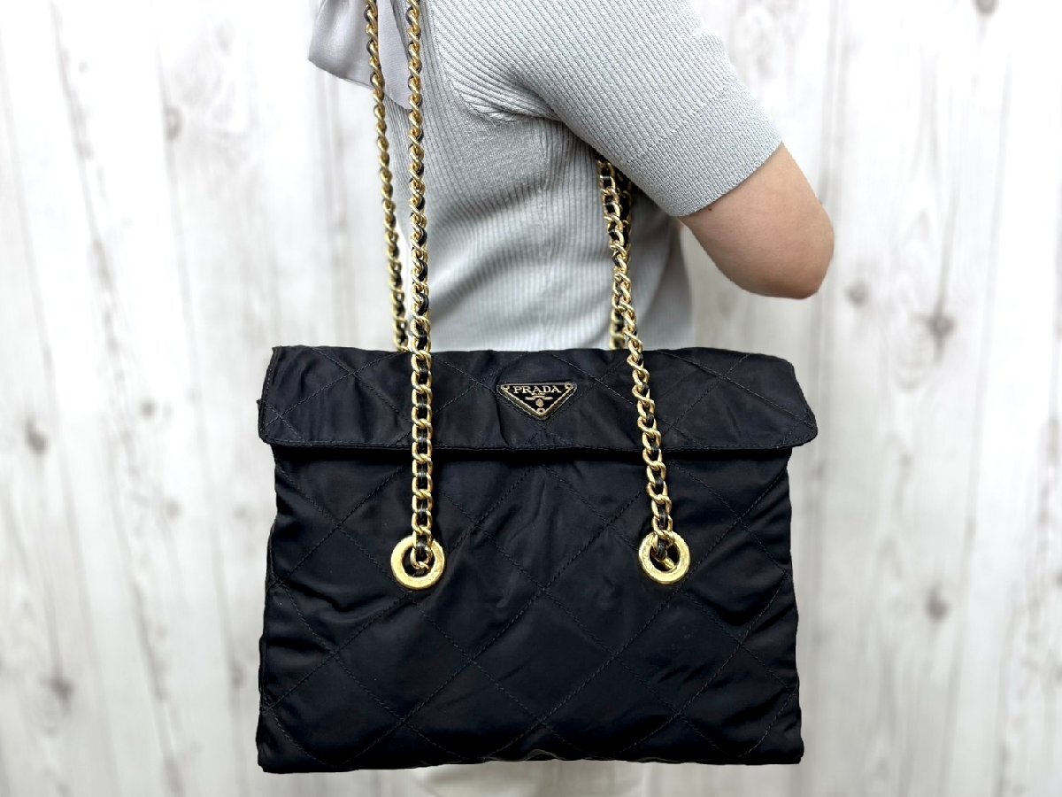 極美品 PRADA プラダ テスート キルティング ゴールドチェーン ショルダーバッグ バッグ ナイロン×レザー 紺 A4収納可 90478Y | ||