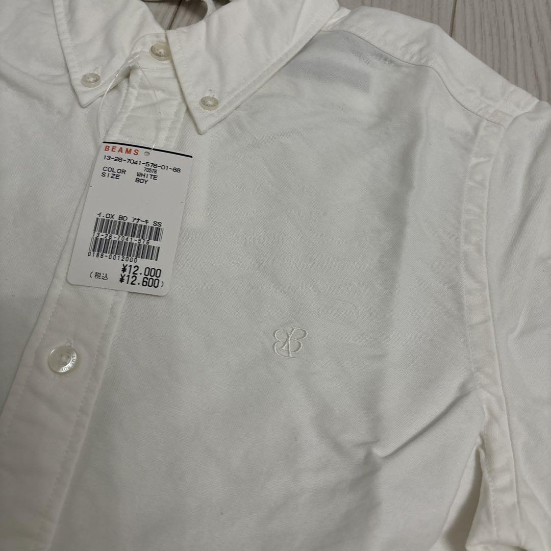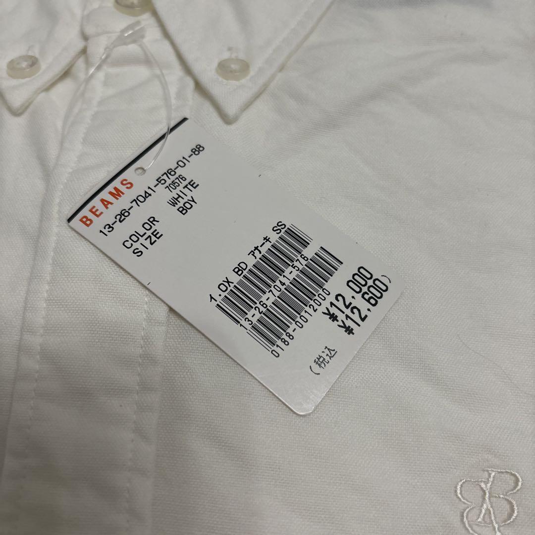 未使用●ビームスボーイ BEAMS BOY オックス BD 穴あき ワンピース/シャツワンピ/白/ホワイト/半袖/リボン/りぼん/トップス/上着★764-3