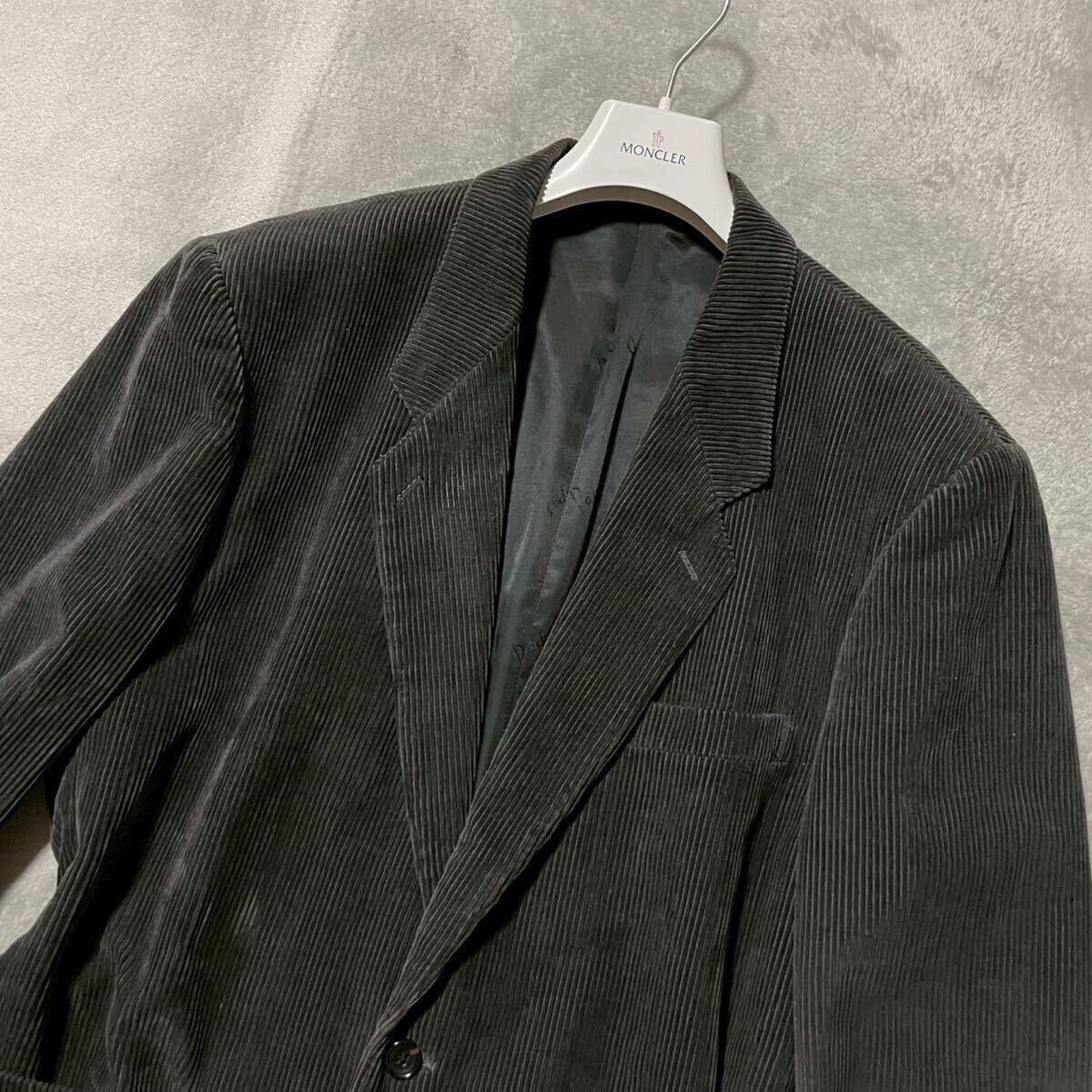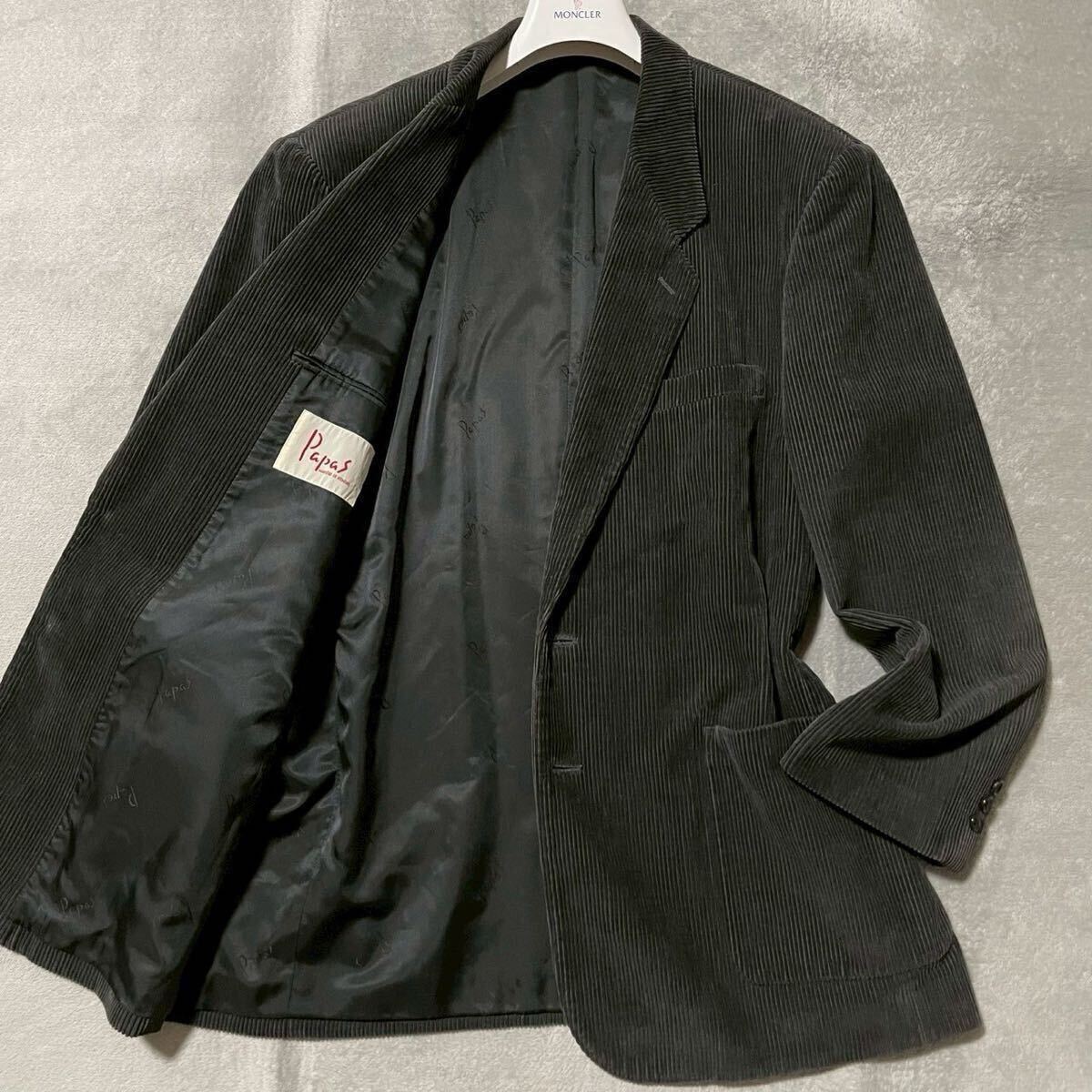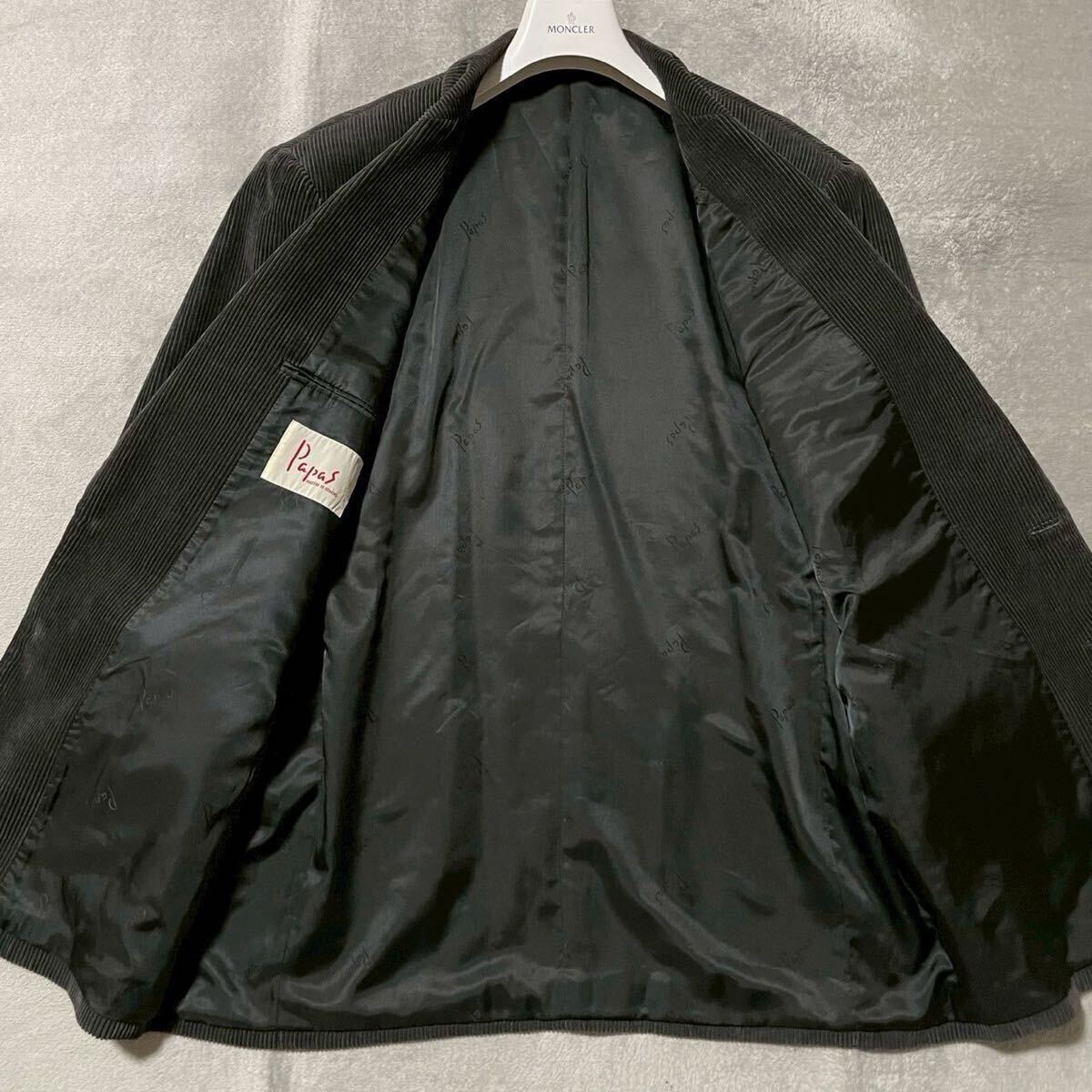 良品★Lサイズ/ Papas パパス テーラードジャケット ブレザー コーデュロイ コットン 裏地ロゴ グレー チャコール 2B 総裏 メンズ 秋冬