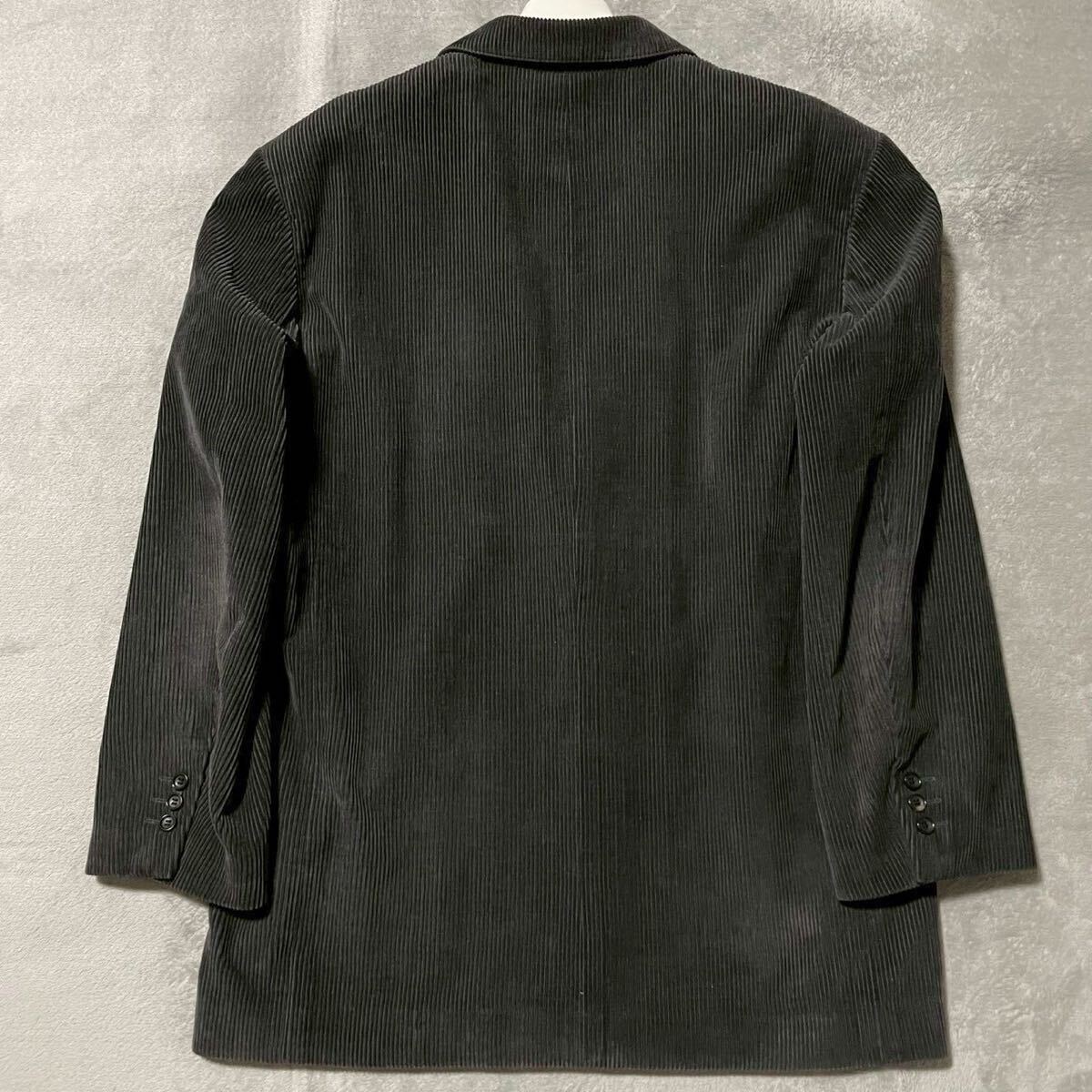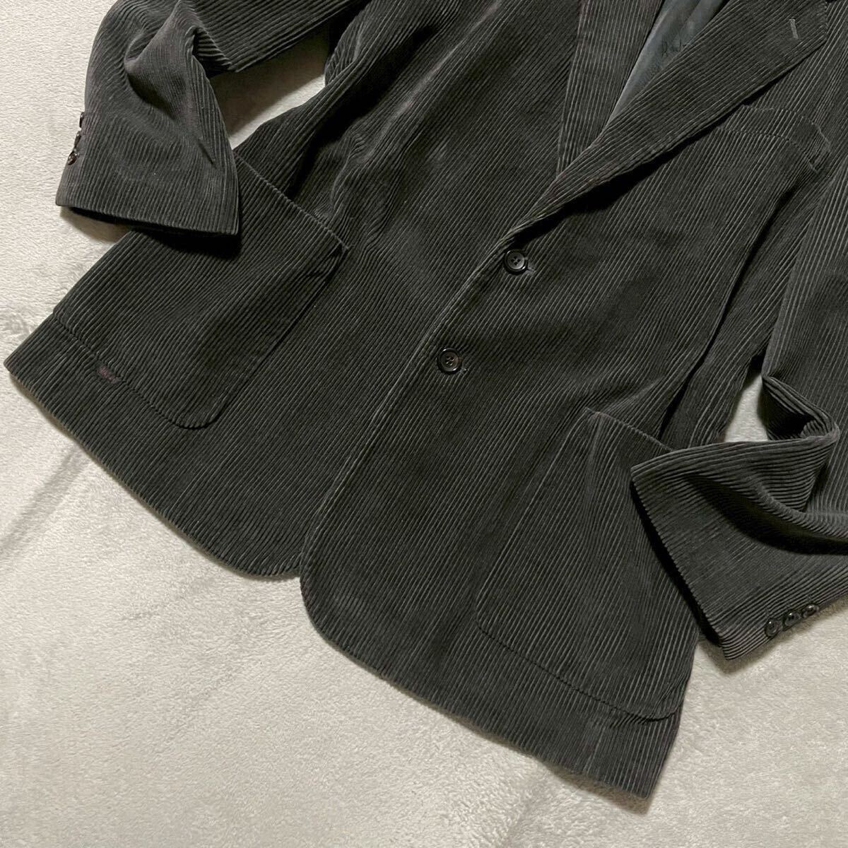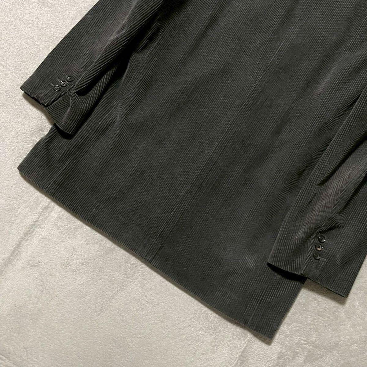 良品★Lサイズ/ Papas パパス テーラードジャケット ブレザー コーデュロイ コットン 裏地ロゴ グレー チャコール 2B 総裏 メンズ 秋冬