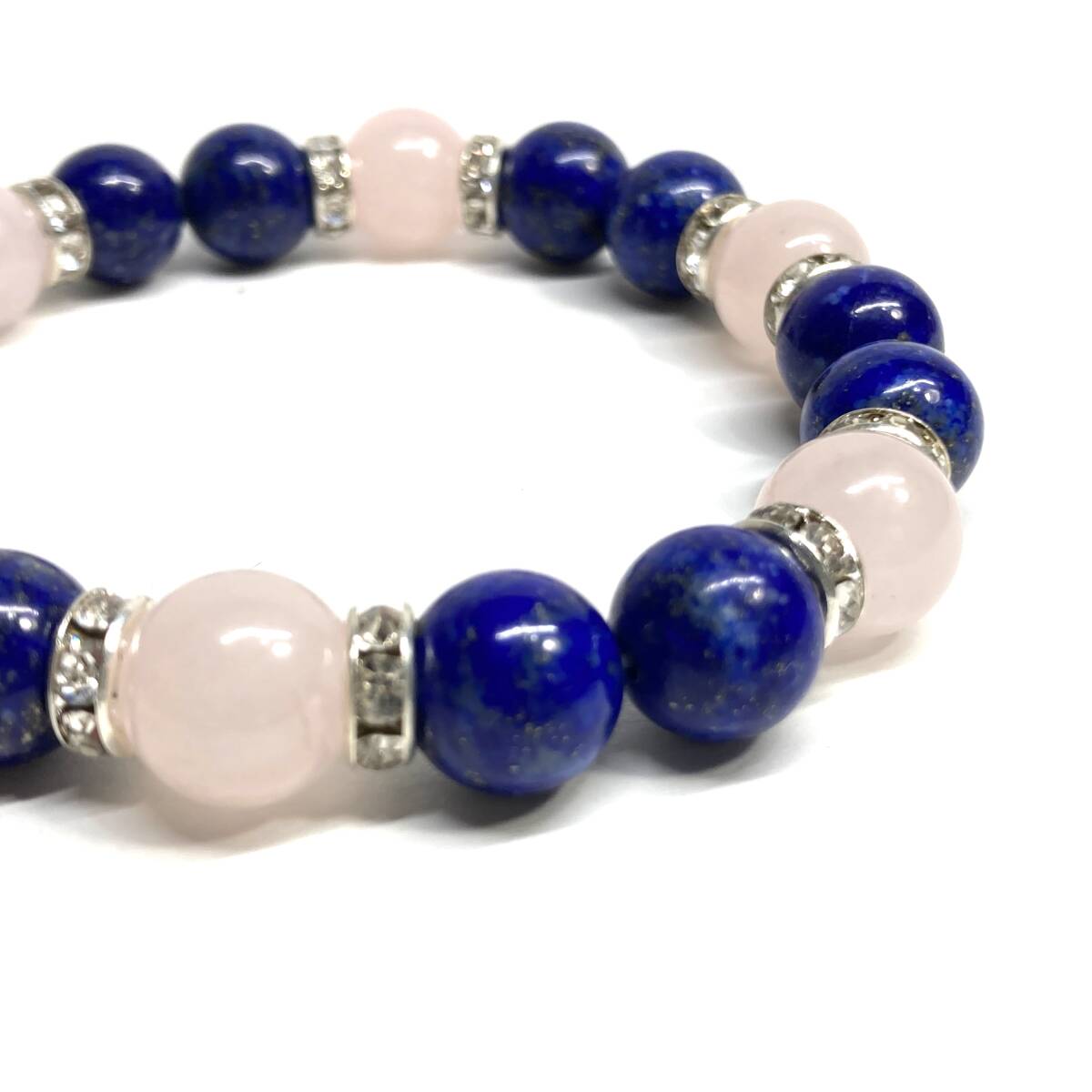 ラピスラズリ&ローズクォーツ パワーストーン ブレスレット 天然石ブレス (シルバー) 10mm メンズ・レディース 恋愛運 ☆