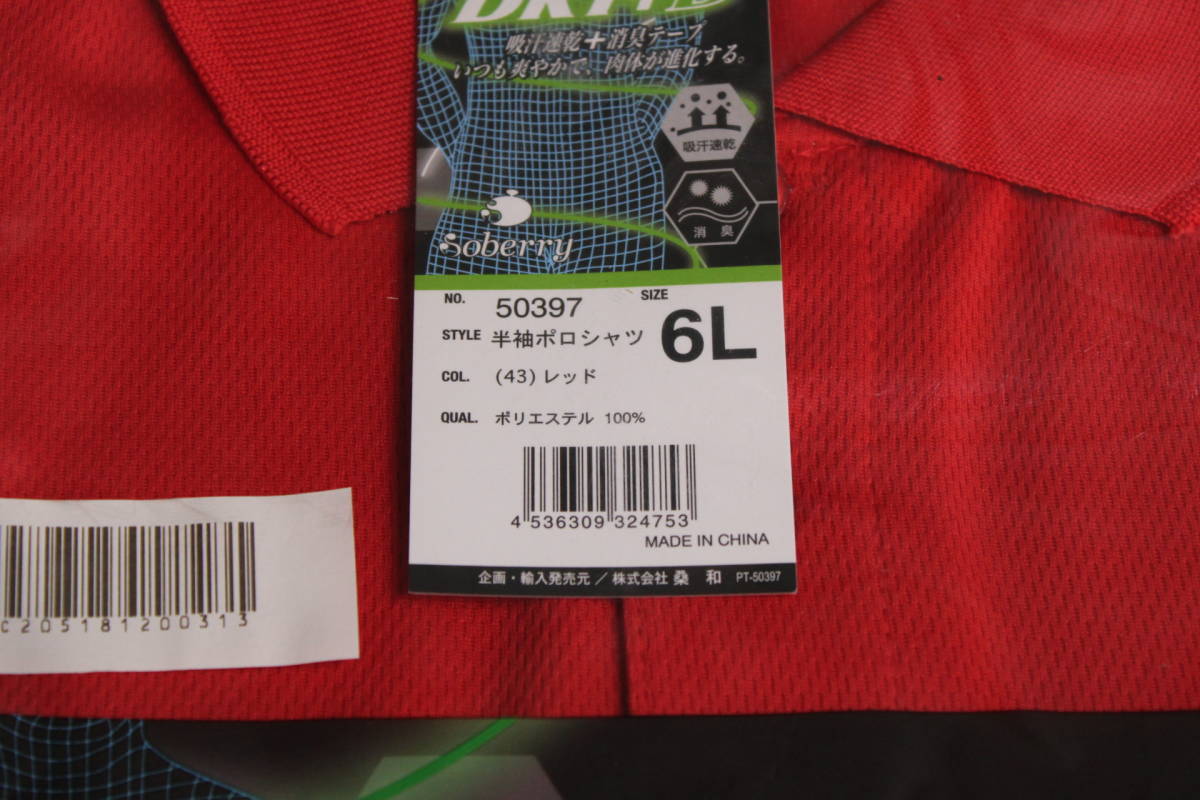 Y2 R0023 SOWA ソーワ 作業服 メンズ 半袖 ポロシャツ (胸ポケット) レッド 6Lサイズ 50397