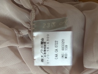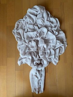 23区のシフォン生地のストールです。パール模様です。長さは200㎝で、両端の結ぶ部分(パールがついていない部分)は左右ともそれぞれ50㎝です。