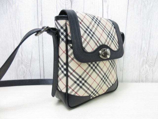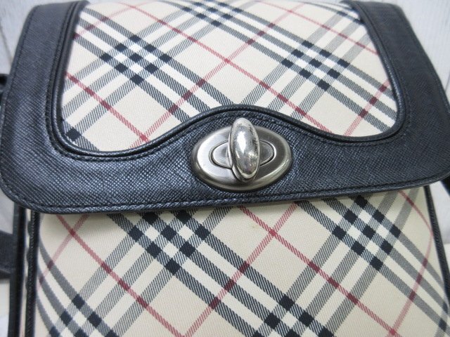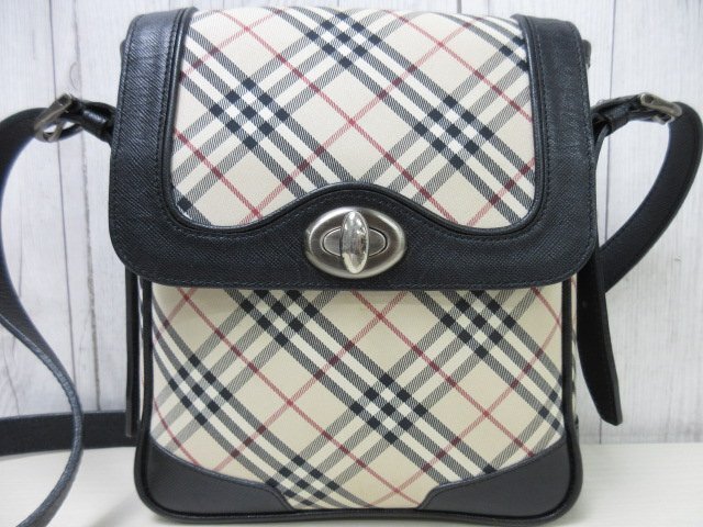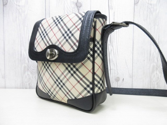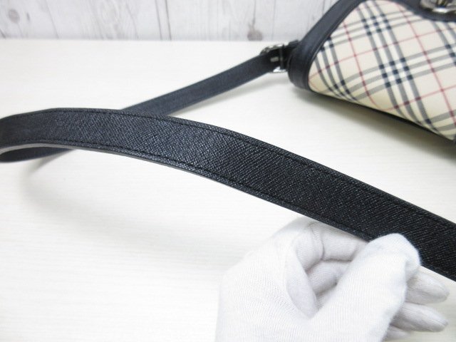 極美品 BURBERRY バーバリー ノバチェック ショルダーバッグ バッグ キャンバス×レザー ベージュチェック柄×黒 90609 | ||