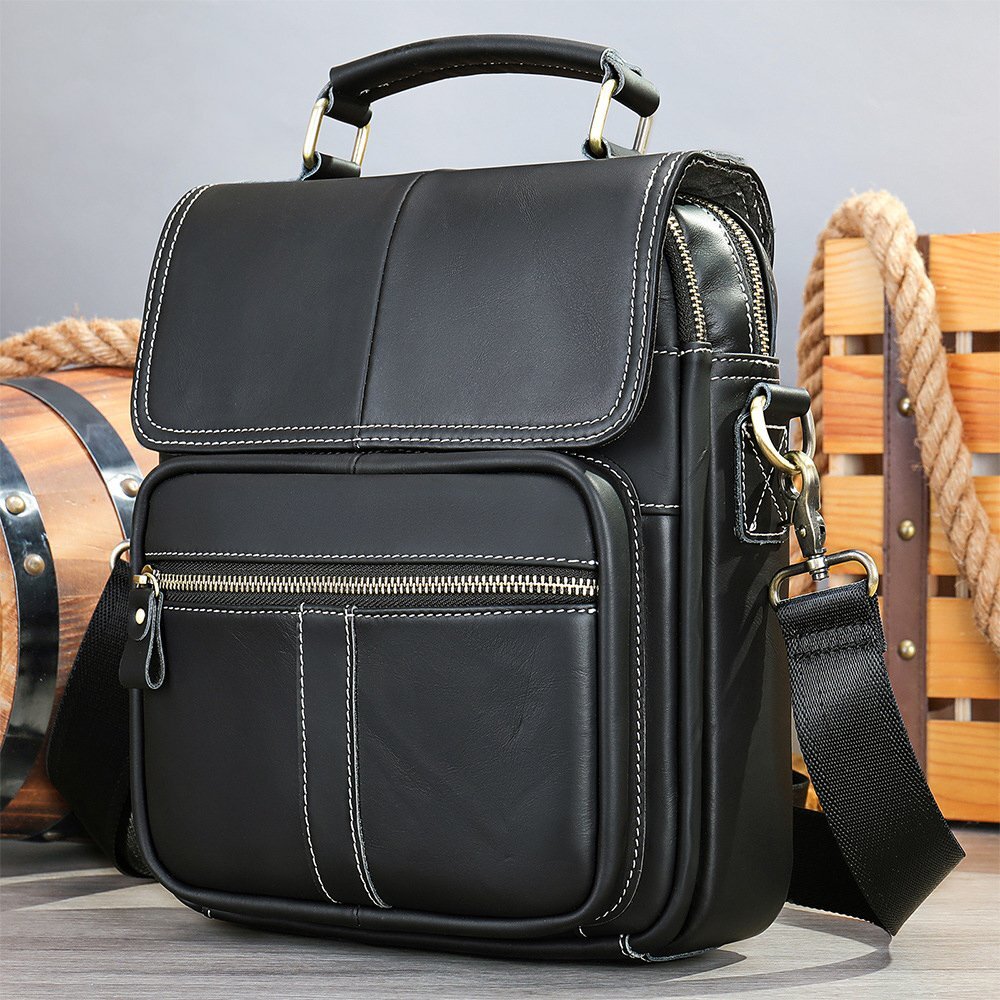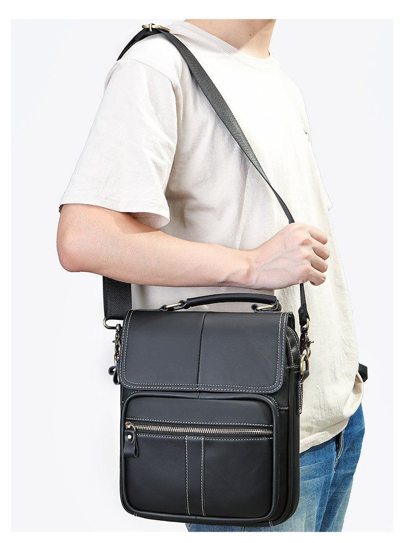 ■ビジネスにもレジャーにも使える、斜め掛け、肩掛け、手持ちの3WAY仕様の柔らかい本革メンズショルダーバッグです。