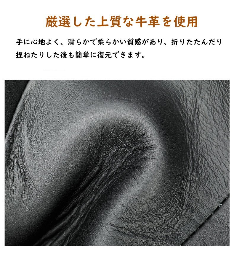 ■厳選された高品質の牛革で作られており、快適な感触、滑らかで柔らかい質感、折り畳んだり捏ねたりした後の回復が簡単です。
