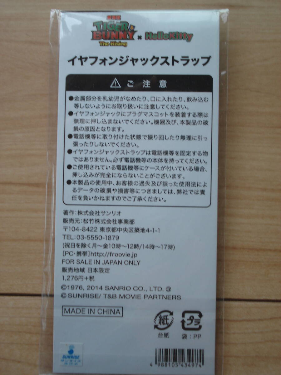 劇場版TIGER&BUNNY~The Rising~×HelloKitty イヤフォンジャックストラップ 未使用未開封