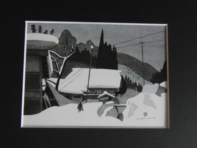 斎藤清、【会津の冬(115)西会津 軽沢】、希少な額装用画集より、新品額装付、状態良好、送料込み
