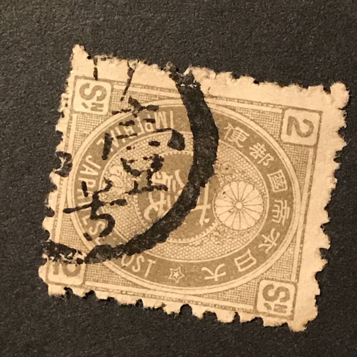 旧小判2銭オリーブ使用済 記番印 第壹号