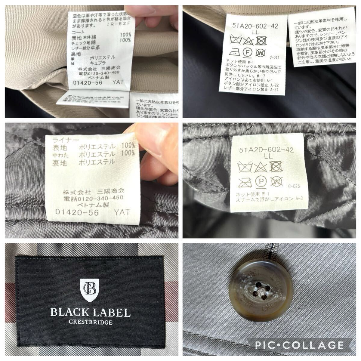 LLサイズ◆美品!BLACK LABEL CRESTBRIDGE ブラックレーベルクレストブリッジ トレンチコート ライナー 中綿 レザー ロング ベルト メンズ