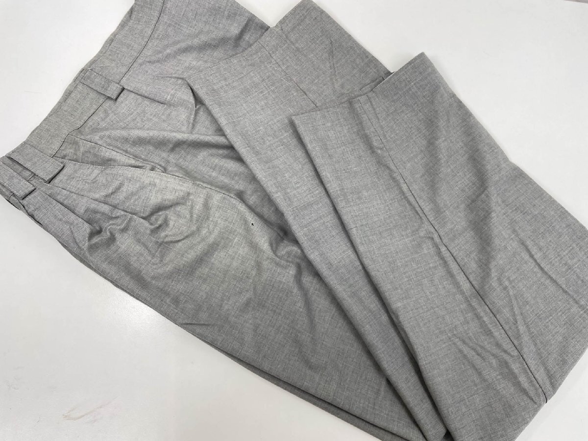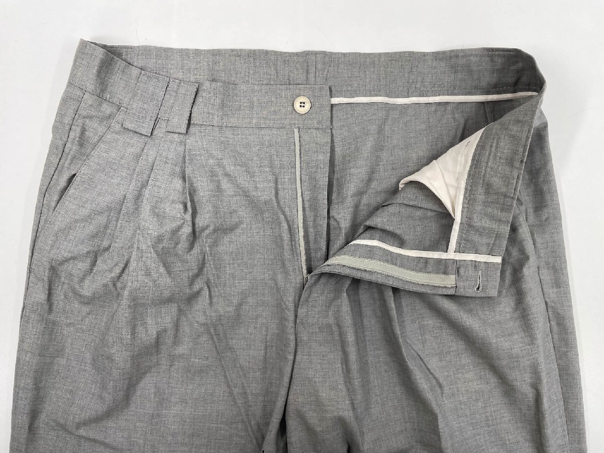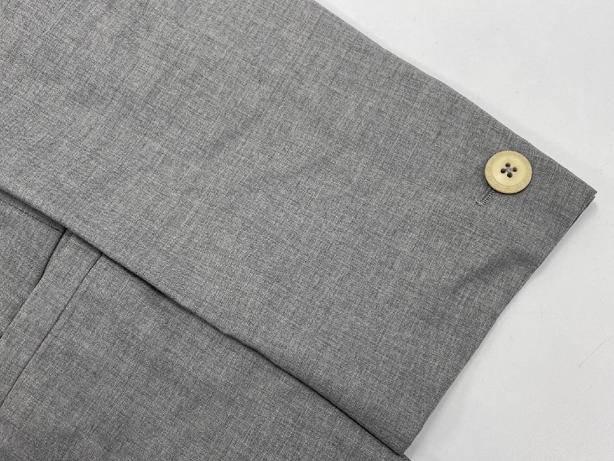 ・スラックス・・・ウエスト実寸約98センチ(0センチ出し、4センチ詰め可能)、股上約32センチ、渡り幅約40センチ、股下約84センチ、総丈約114センチ、裾幅約22センチ、シングル仕上げ(最大4センチ出しが可能)