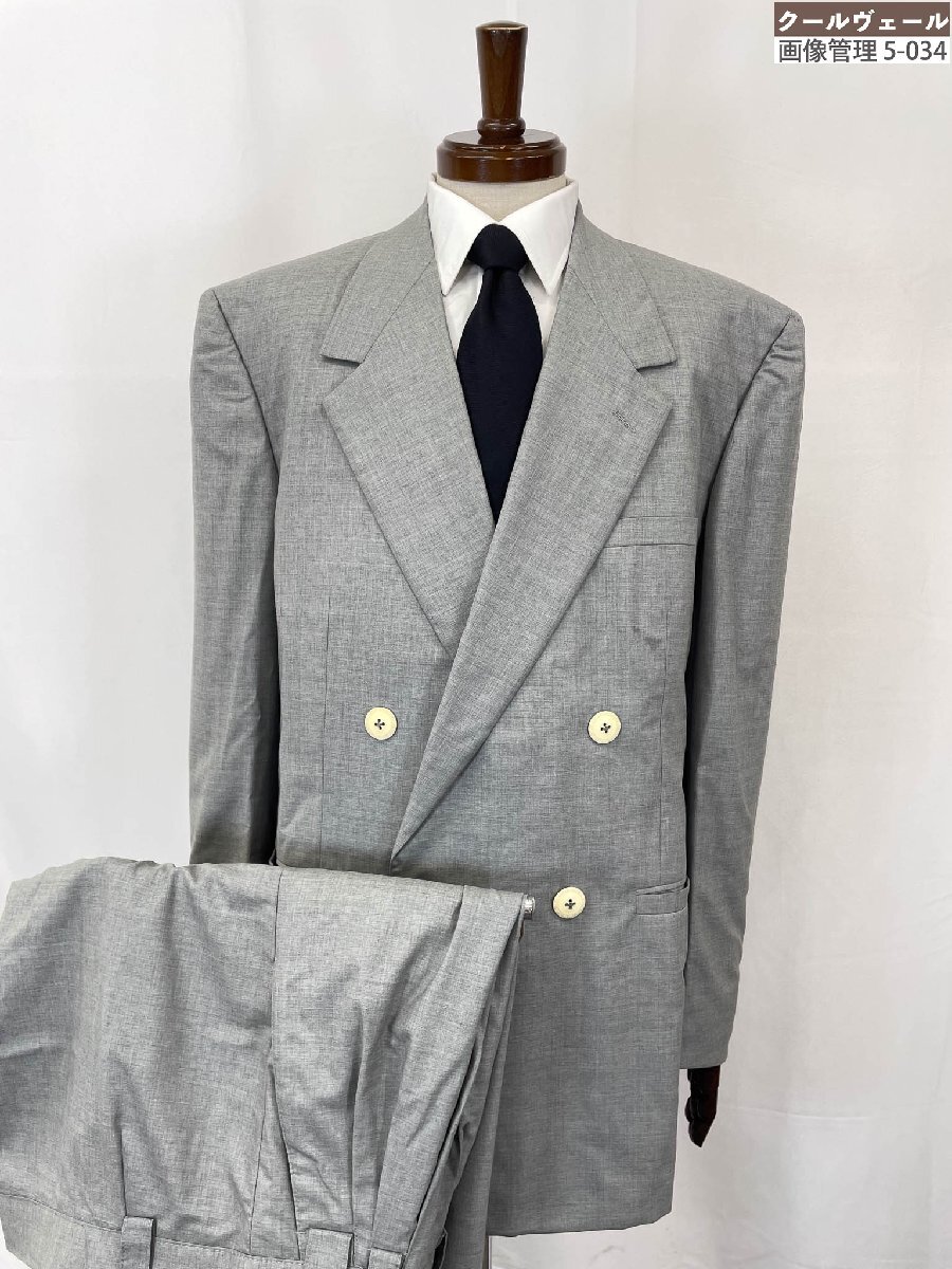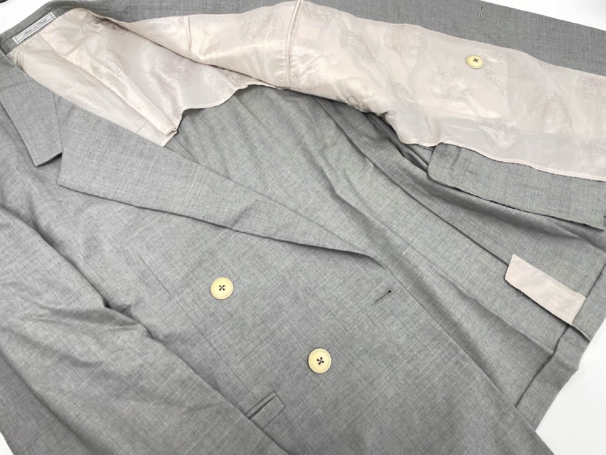 【ジャンニヴェルサーチクチュール】25V6VC ウール100% ダブル4ボタン スーツ (メンズ) size52/8R ライトグレー系 織柄 ◇35RMS2640◇