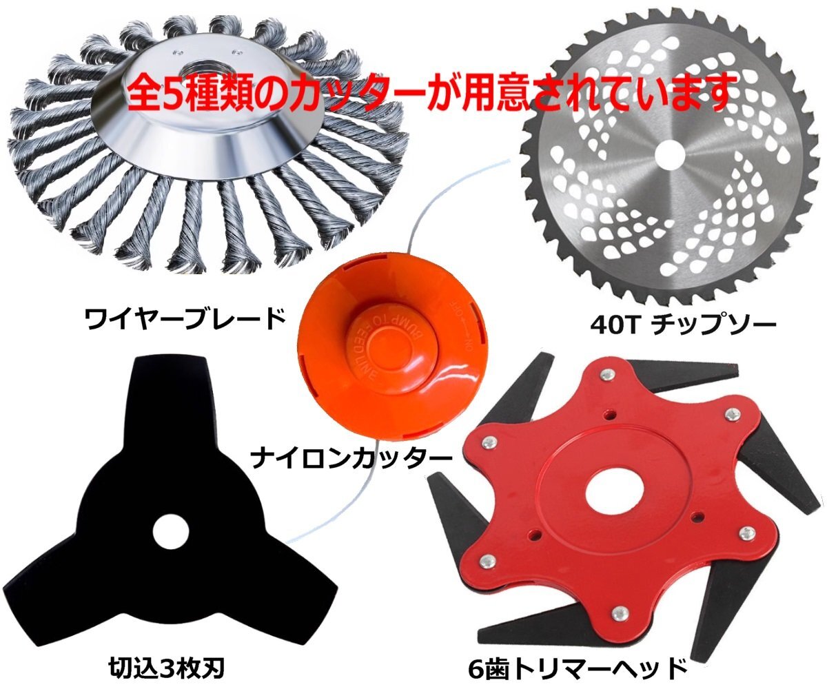 送料無料 本格52cc草刈り機 ハイパワー 多目的 5種類のカッターが用意 強力エンジン搭載 草刈機セット 刈払機 除草 草取り