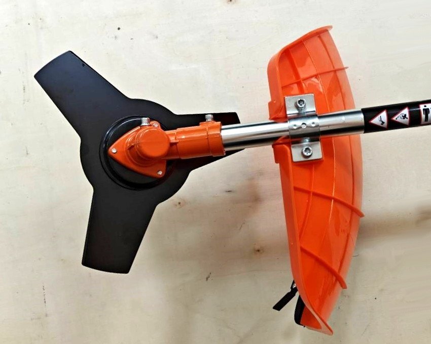 石、障害物の飛散が少なく安全な肩掛け式のエンジン刈払機。