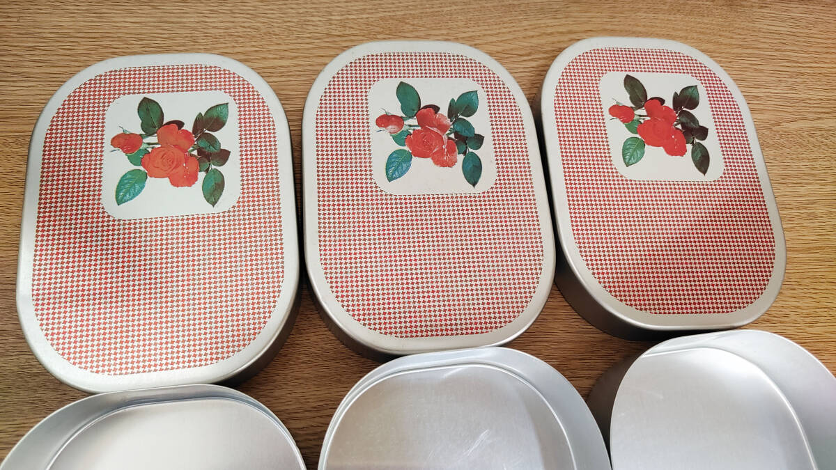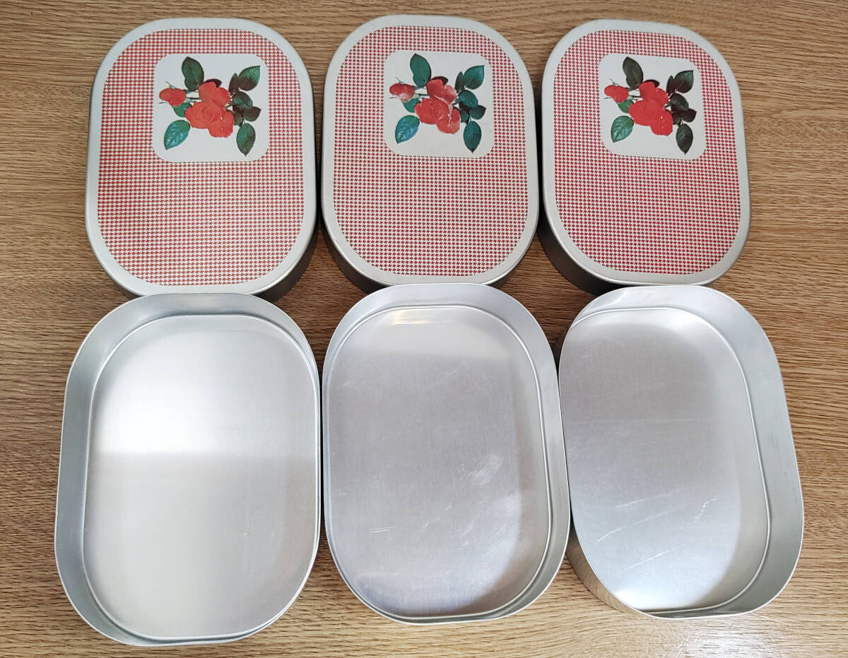 【昭和レトロ】 リケン バラ柄 アルミ弁当箱 3個セット 理研富士印