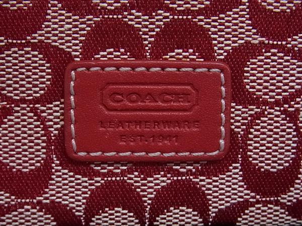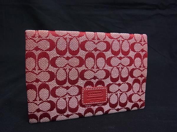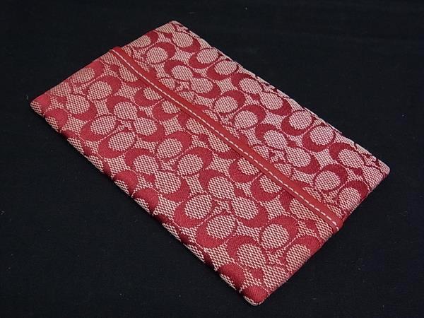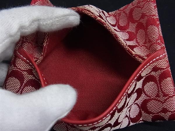 ■美品■ COACH コーチ ミニシグネチャー キャンバス ポケットティッシュケース レディース メンズ レッド系×ブラウン系 DJ5997