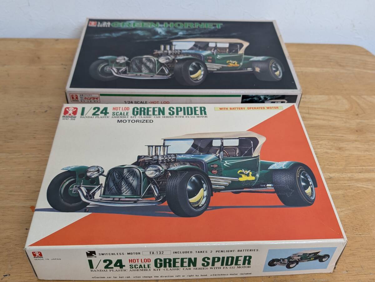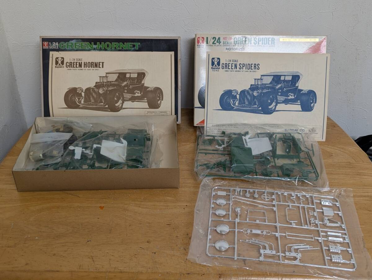 旧バンダイ1/24 グリーン ホ―ネット モータ―付 完品 とグリーン スパイダー ギア― タイヤ 金具部品欠品 モータ―付 の2個セットです。欠品があってもご容赦下さい。興味ある方いかがですか。