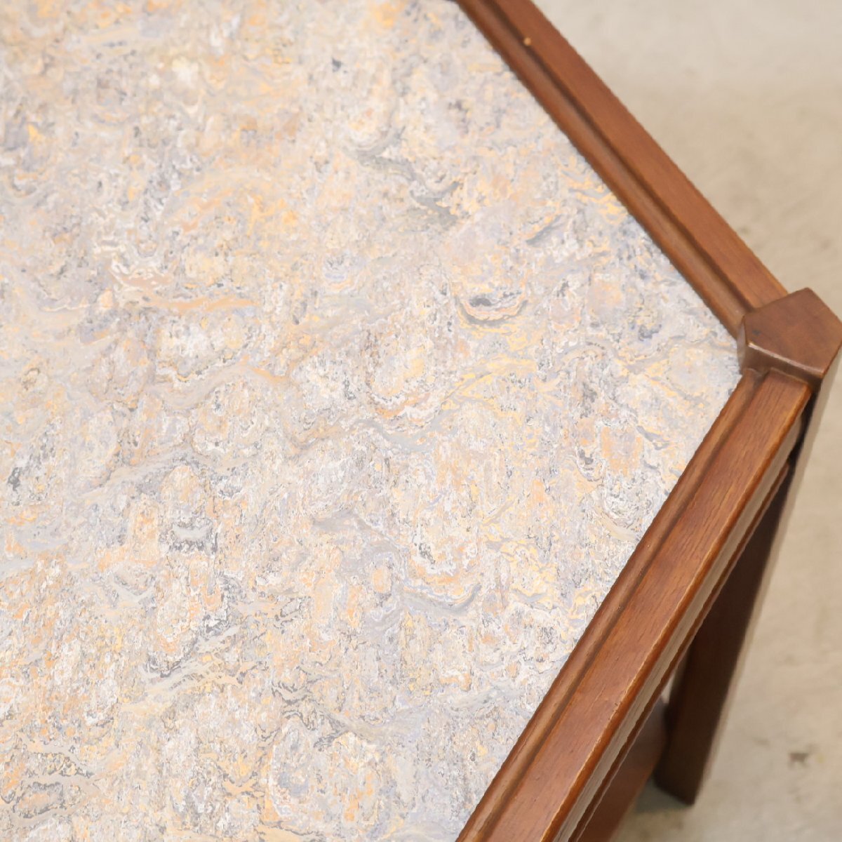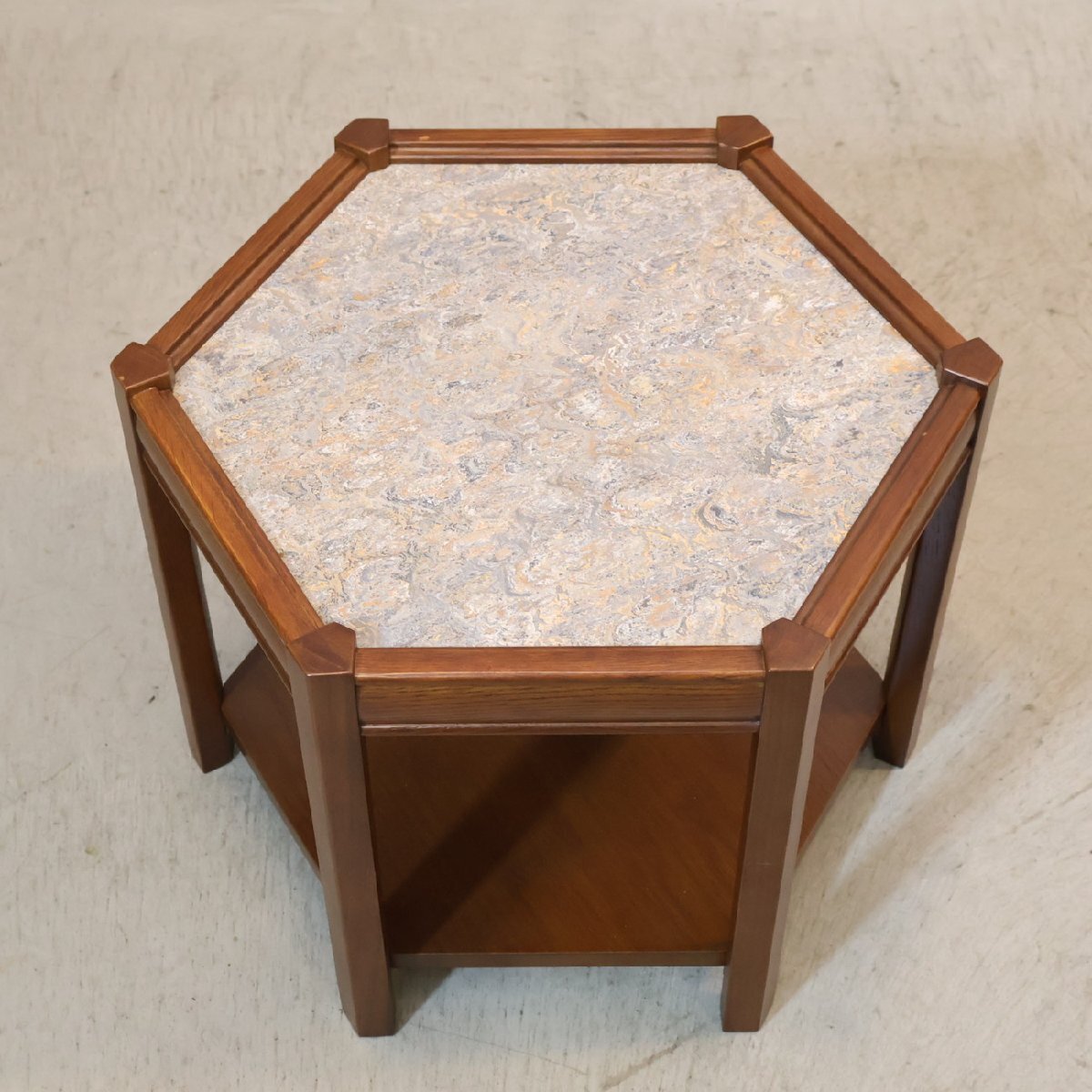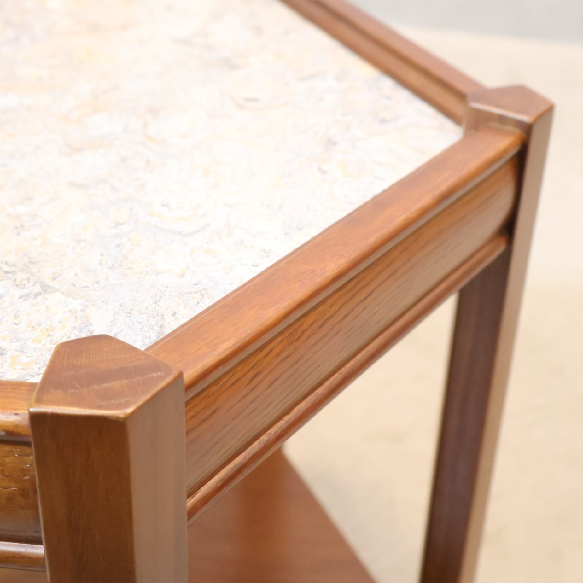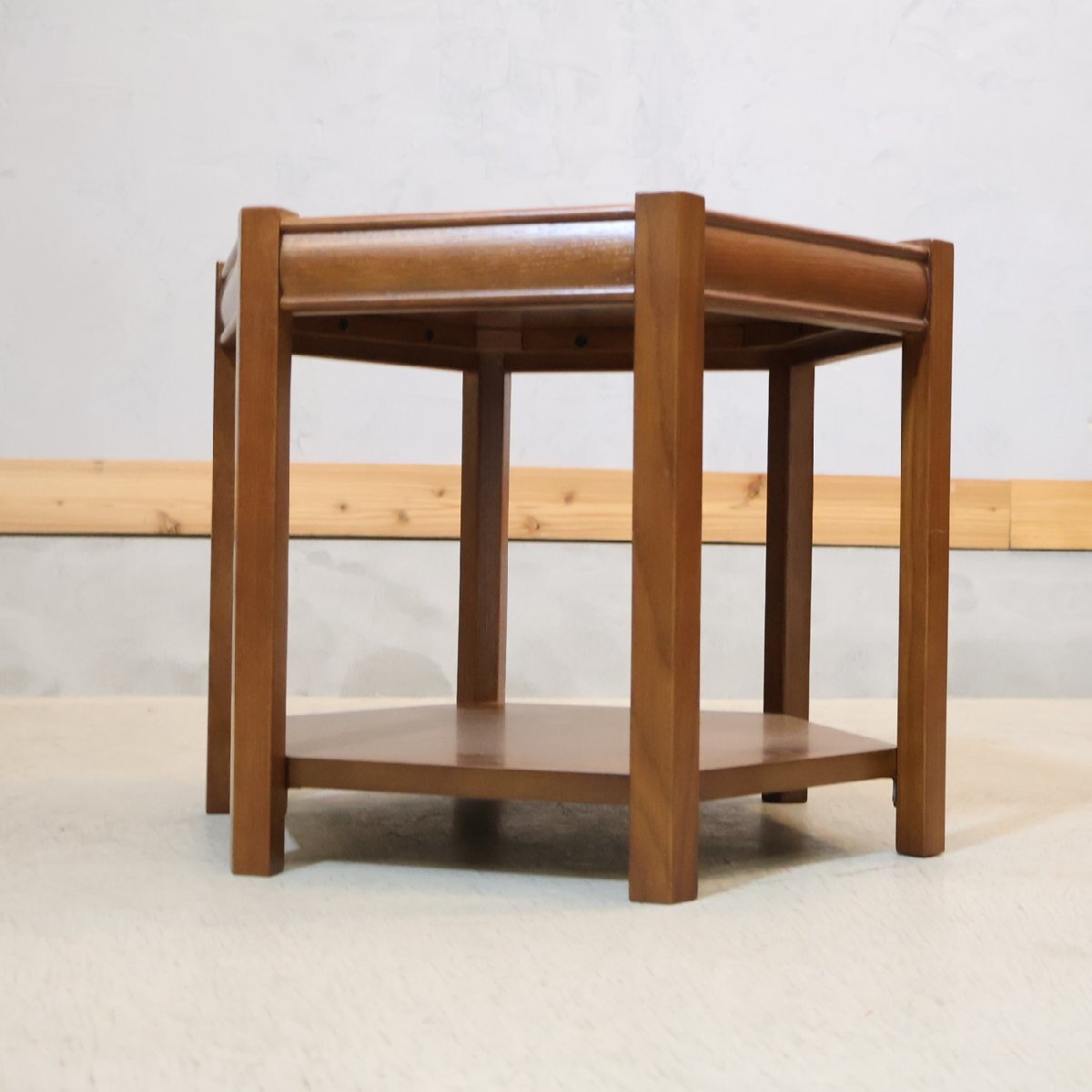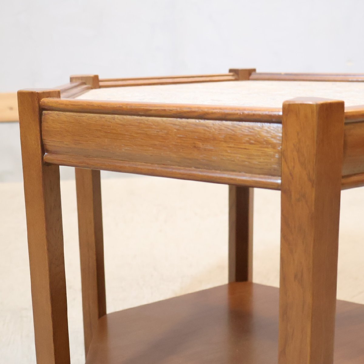 ヴィンテージサイドテーブルのインスピレーションを元に製作された六角形のテーブル。