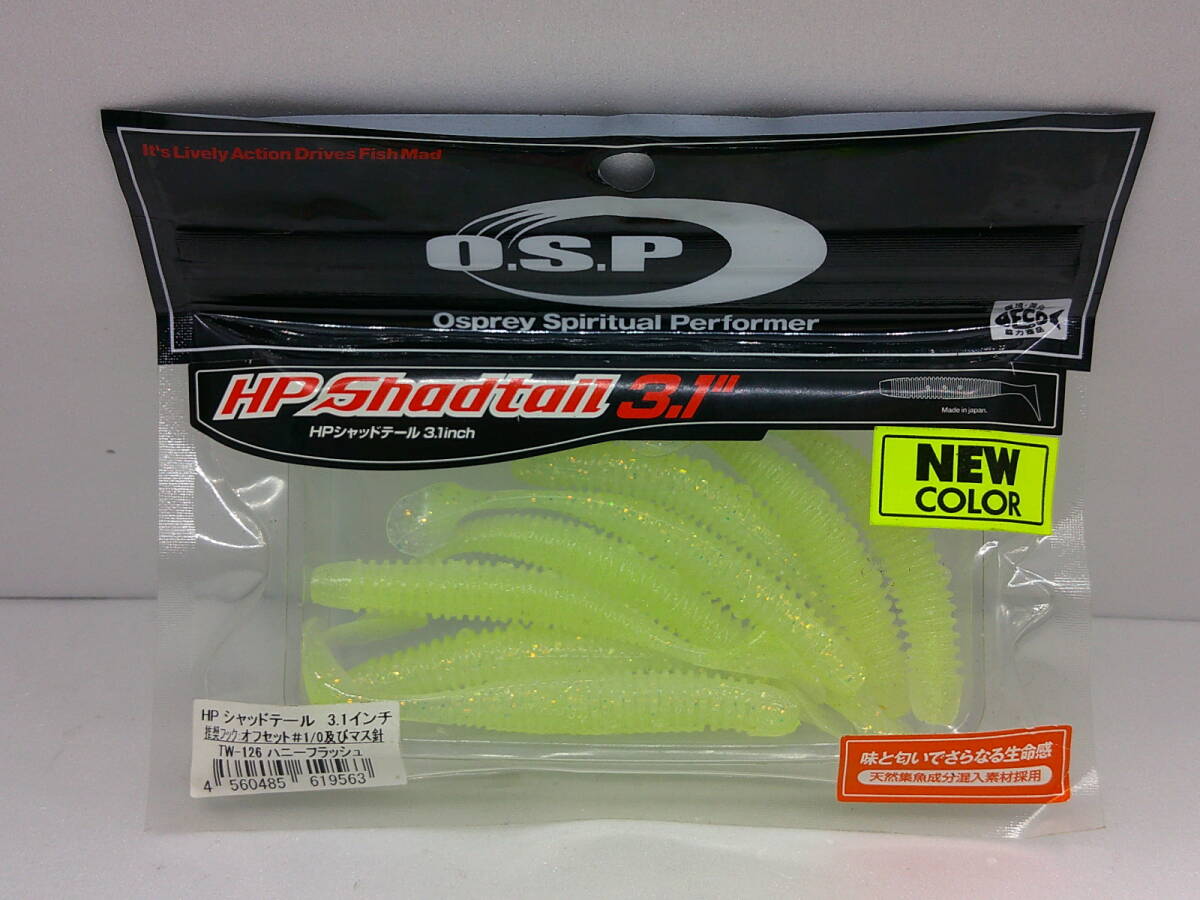 | ☆O.S.P HPシャッドテール3.1 TW-126ハニーフラッシュ 新品になります。 写真に写っているものが全てです。ルアースタンド等は付属しません。 | |
