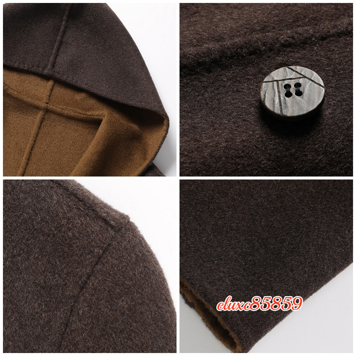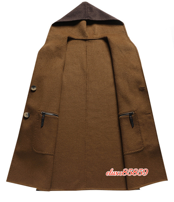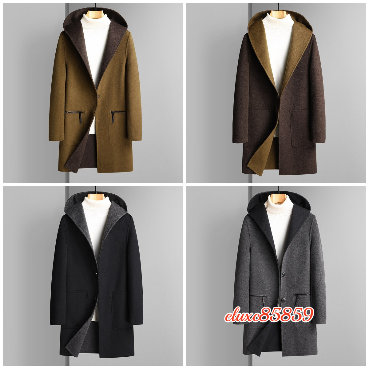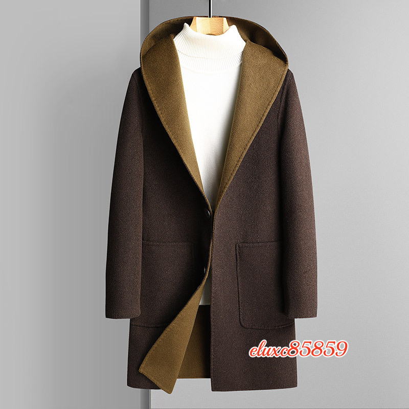 秋冬 メンズ リバーシブル ウールコート ロング フード付き 両面着 チェスターコート ビジネス アウター 防寒 おしゃれ L カーキ