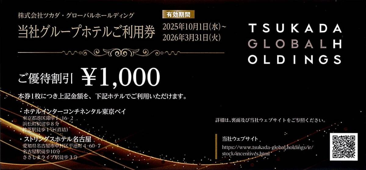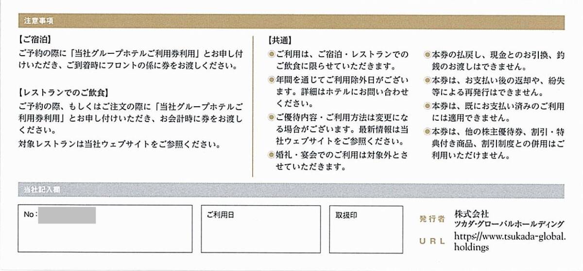 有効期限は「2026年3月31日」です。 「ホテルインターコンチネンタル東京ベイ」「ストリングスホテル名古屋」でご利用いただけます。 ※詳細につきましては、画像やホームページの株主優待をご覧ください。 |