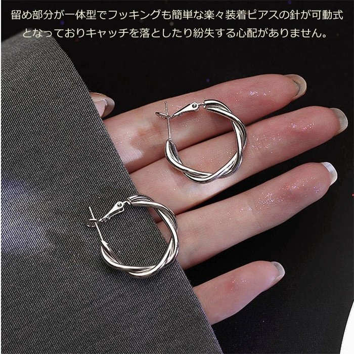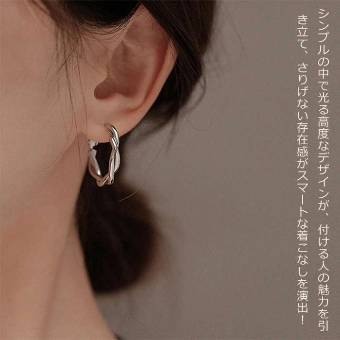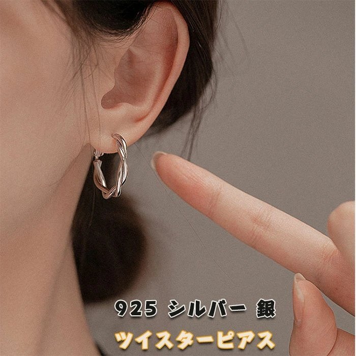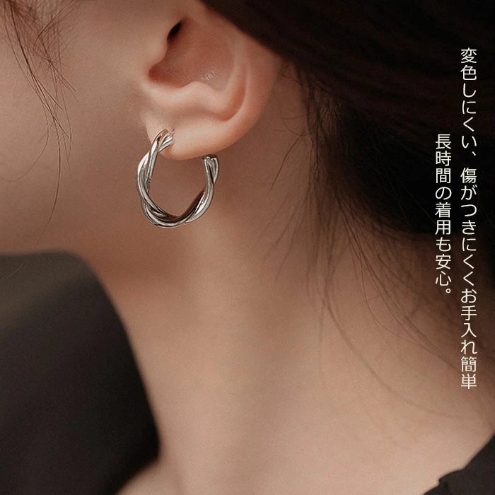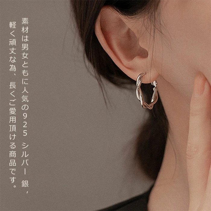 ピアス レディース 人気 金属アレルギー対応 ツイスト フープピアス リングピアス シルバーシルバー925 シルバー☆1点