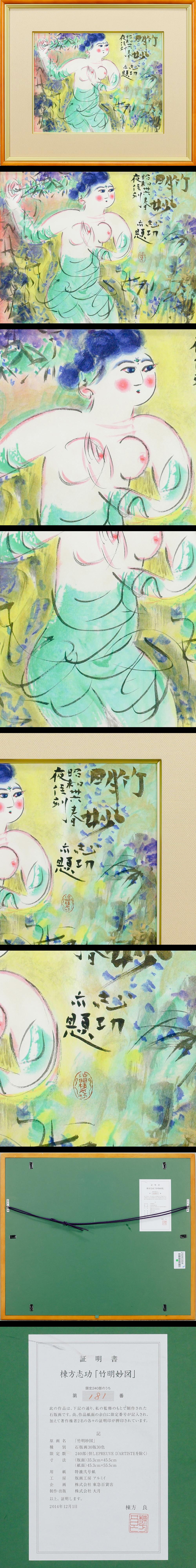【真作】【WISH】棟方志功「竹明妙図」リトグラフ 8号 東急取扱 証明シール ◆人気作  〇文化勲章 文化功労者 国際的木版画家 #25093304
